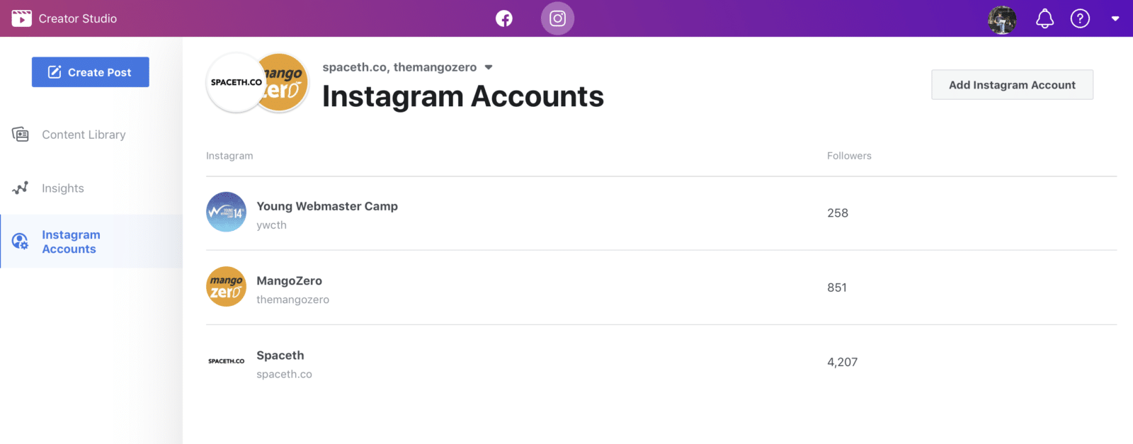 วิธีเพิ่มบัญชี Instagram เข้าไปใน Creator Studio