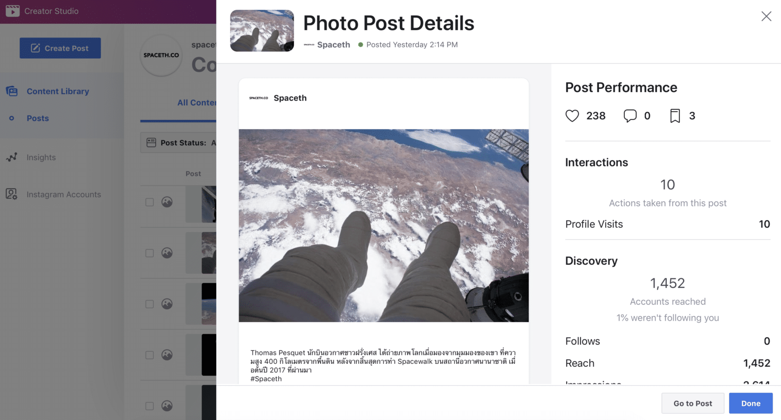 เพียงเท่านี้เราก็จะสามารถอัพโหลดรูปผ่าน Creator Studio บนคอมพิวเตอร์ได้โดยที่ไม่ต้องใช้แอพผ่านมือถือแล้ว ตรงนี้สร้างความสะดวกให้กับหลายคนมาก เพราะบางทีเรานั่งทำงานหน้าคอมหรือต้องพิมพ์ Caption ยาว ๆ ก็ไม่จำเป็นต้องก็อปไปวางใส่มือถือแล้วโพสต์อีก
