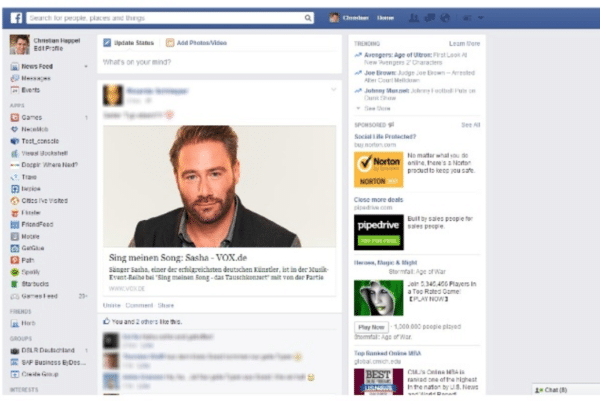 เป็น UI Homepage ที่เป็นมาตรฐานของ Facebook นั้นเป็นต้นมา Layout ในเวอร์ชั่นปัจจุบันก็ยังคล้ายแบบนี้อยู่ แต่ขนาดต่างๆก็ถูกปรับให้เหมาะสมตามวันเวลาและผู้ใช้งานเรื่อยมา