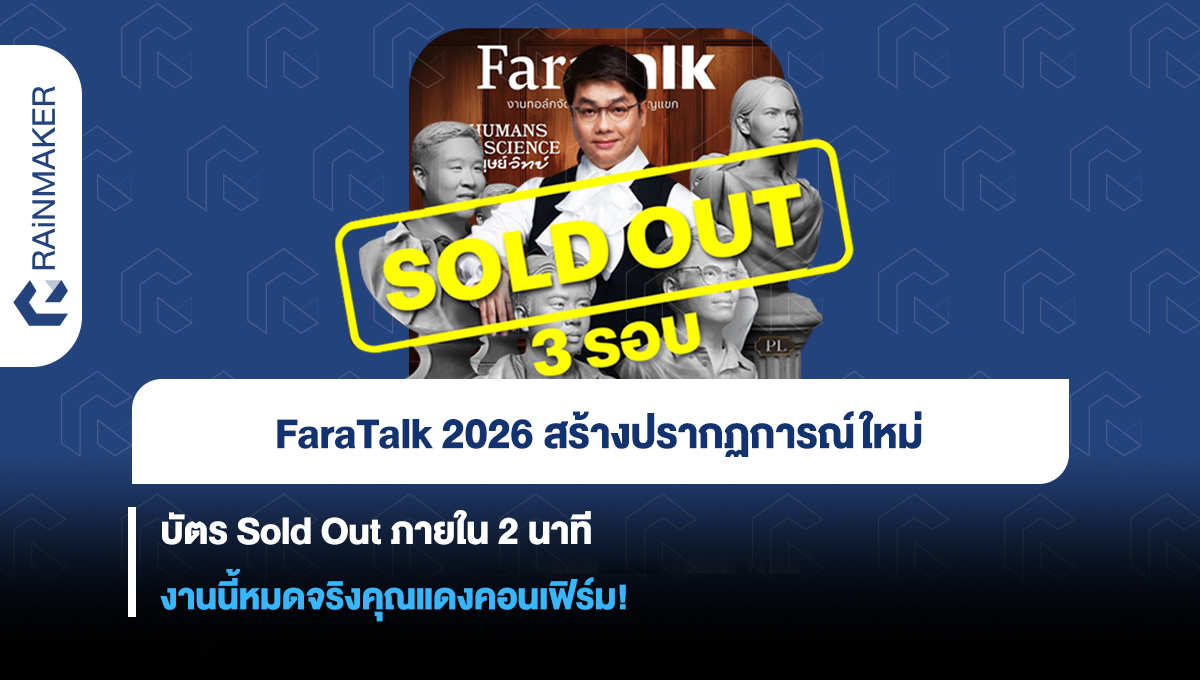 เรียกได้ว่าเป็นอีกหนึ่งปรากฏการณ์ที่สะท้อนพลังของคอมมูนิตี้สายความรู้และแรงสนับสนุนจากแฟน ๆ อย่างชัดเจน เมื่อ FaraTalk 2026 เปิดจำหน่ายบัตรอย่างเป็นทางการ และใช้เวลาเพียงแค่ 2 นาทีเท่านั้น บัตรทั้งหมดก็ถูกจับจองจนหมดเกลี้ยง