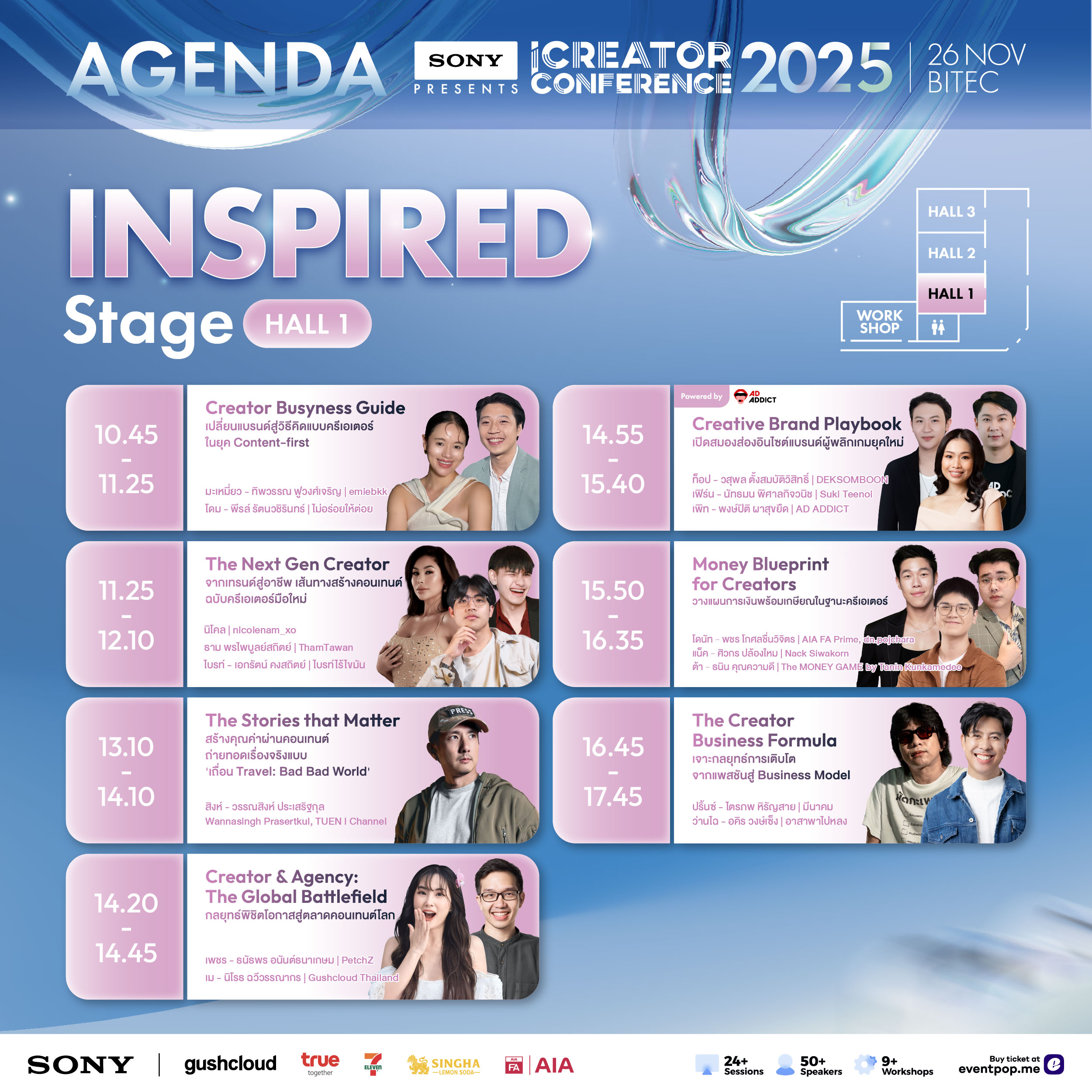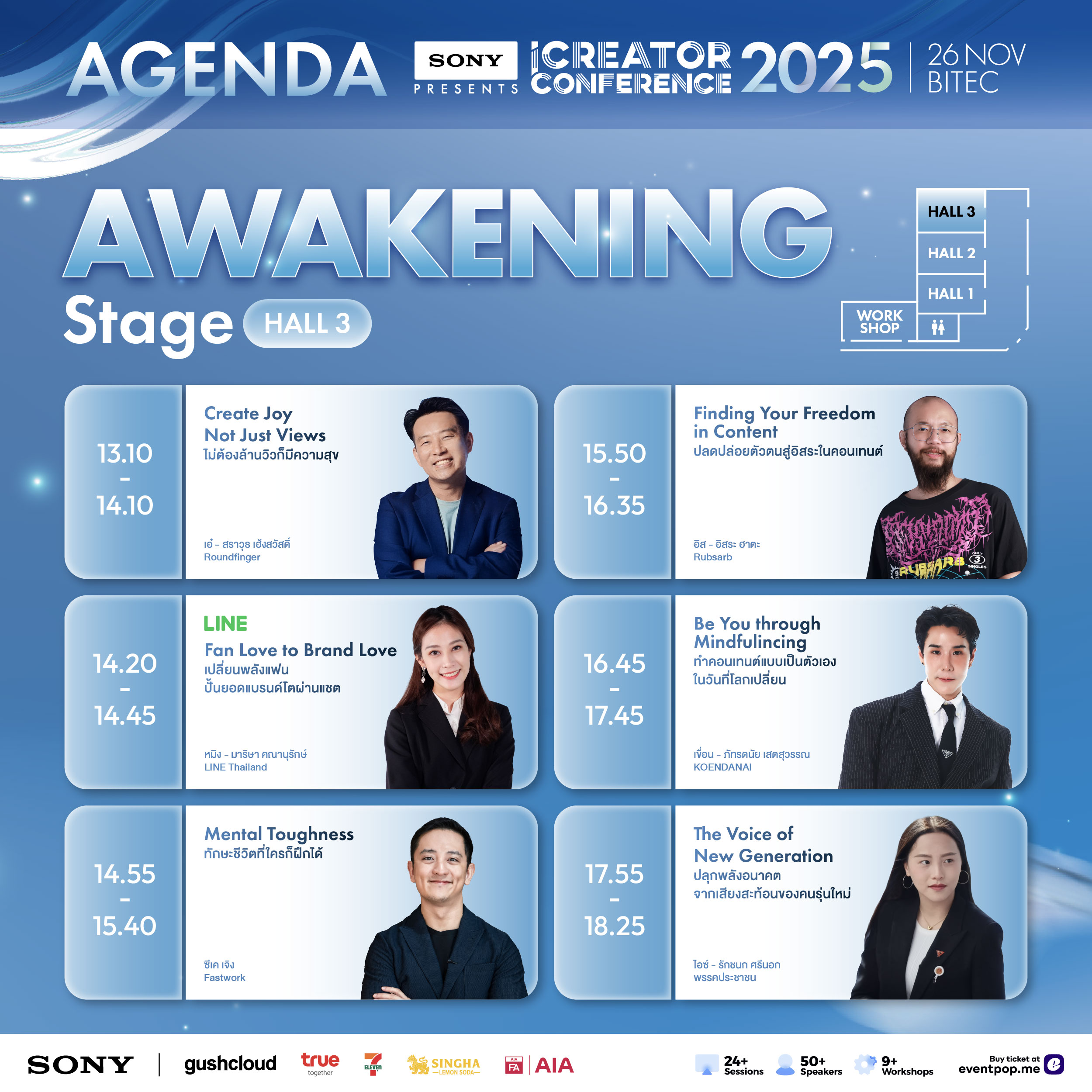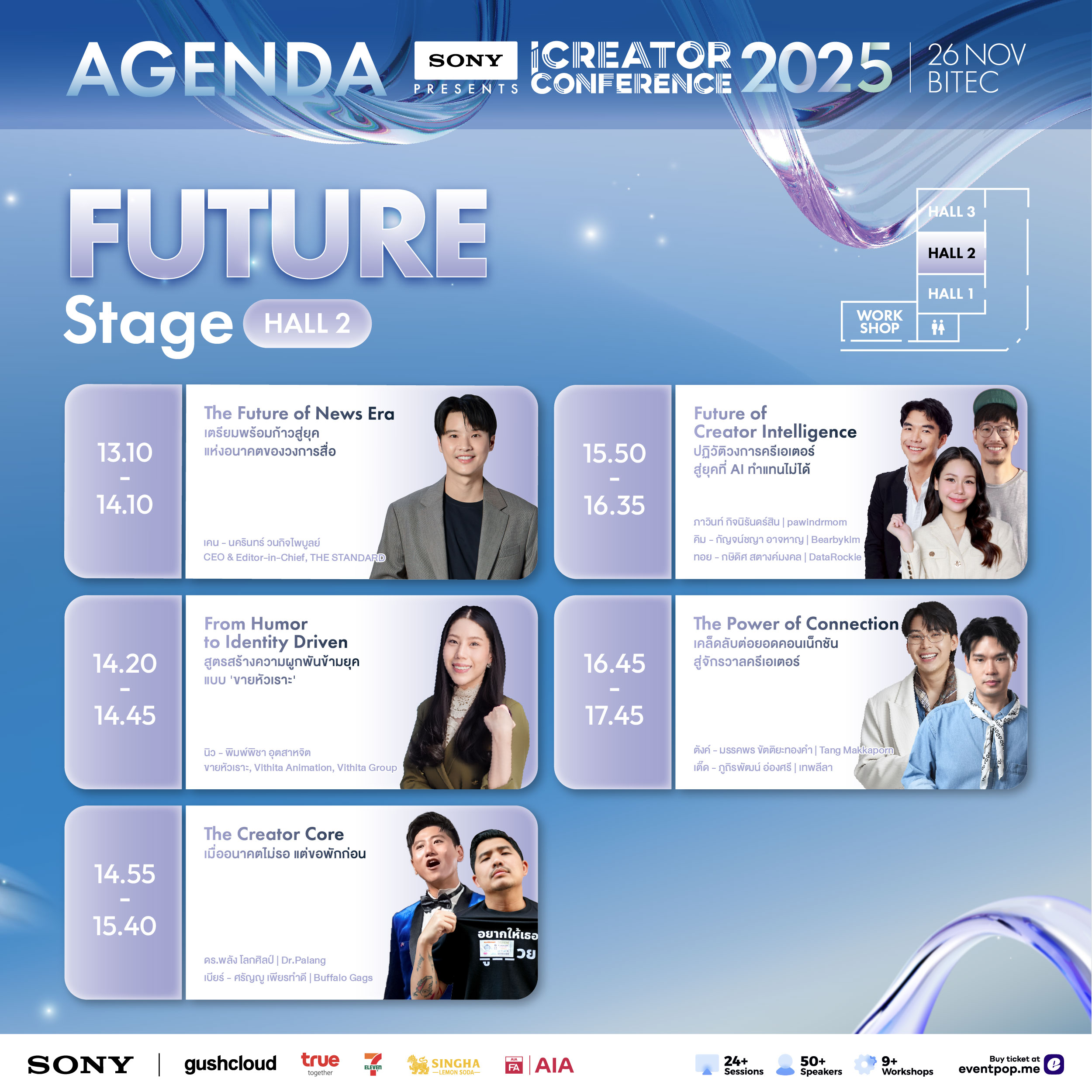 ‘iCreator Conference 2025 Presented by Sony: Awaken The Future ปลุกพลังอนาคตที่กำหนดได้’ งานที่รวมตัวเหล่าครีเอเตอร์ อินฟลูเอนเซอร์ แบรนด์ และเอเจนซี มาปลดล็อกสู่ศักยภาพและตัวตนใหม่ ๆ ที่ทำให้ก้าวต่อได้ในวงการจากประสบการณ์ ที่มีทั้งความสำเร็จและความล้มเหลวที่ท็อปครีเอเตอร์ผ่านมาแล้ว พร้อมสะท้อนและมองไปถึงตัวตนและทบทวนสิ่งที่กำลังทำ ว่าจะทำไปได้นานแค่ไหน และทำยังไงให้อยู่รอดได้ในปี 2026