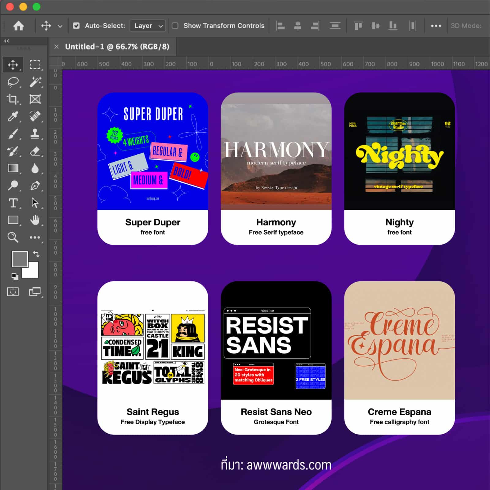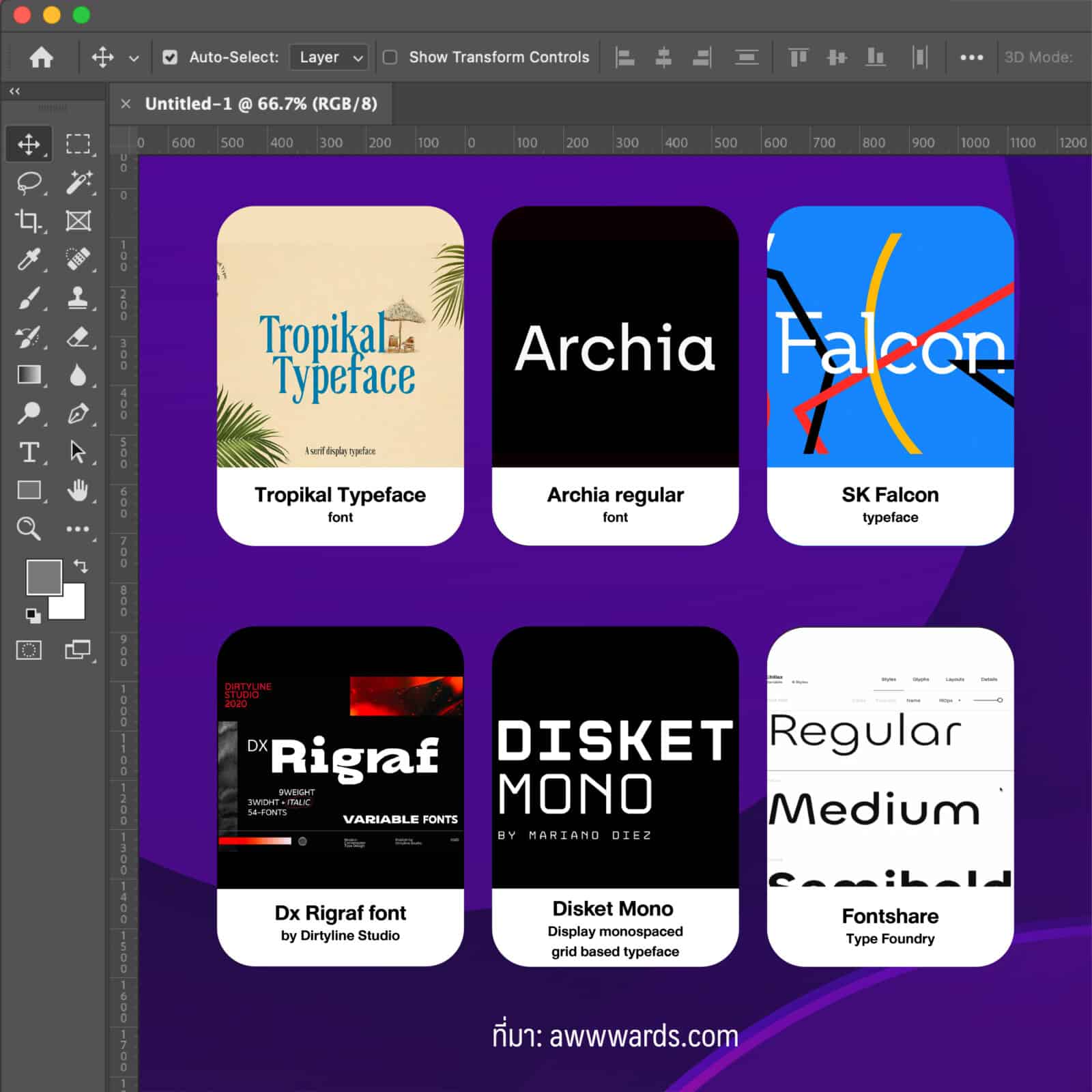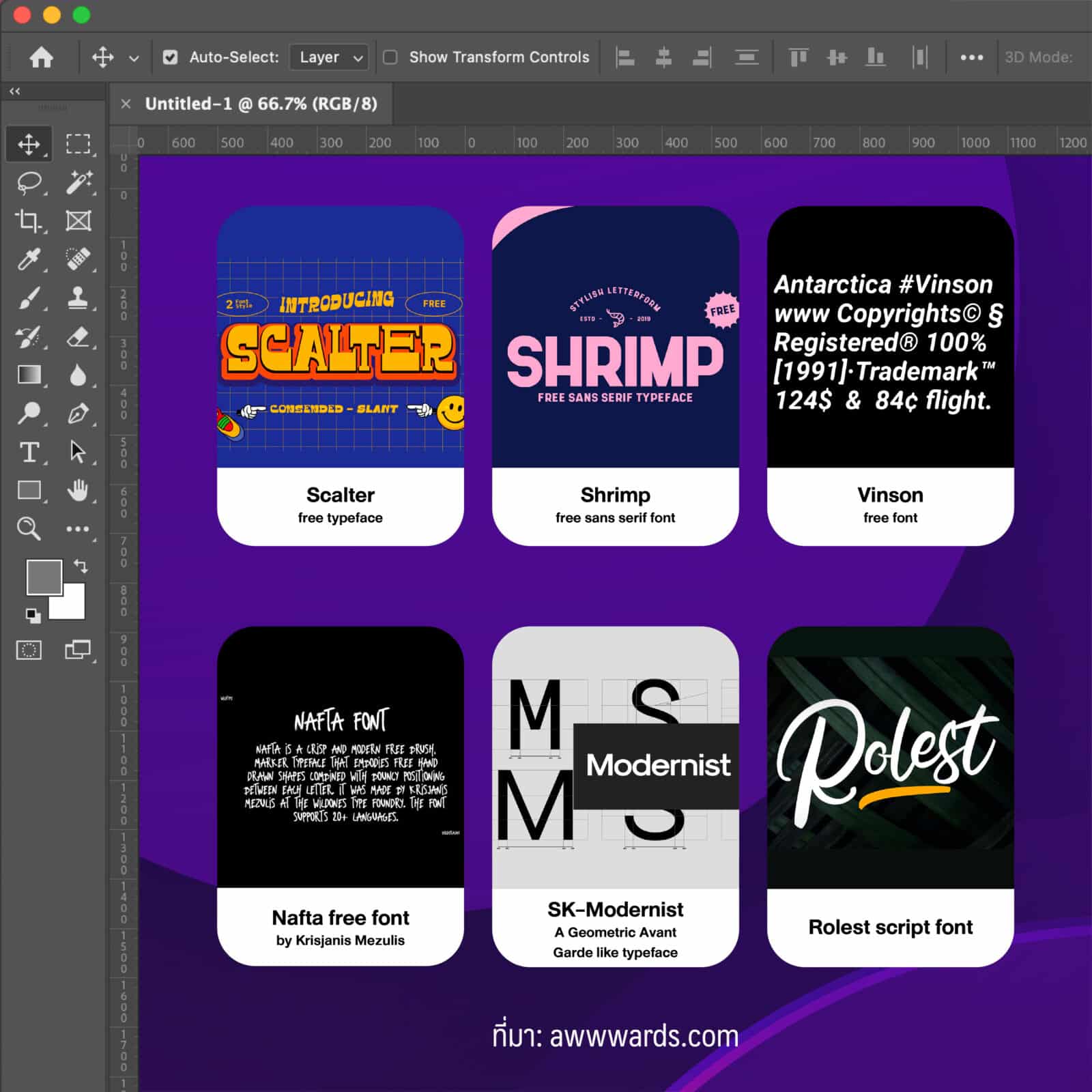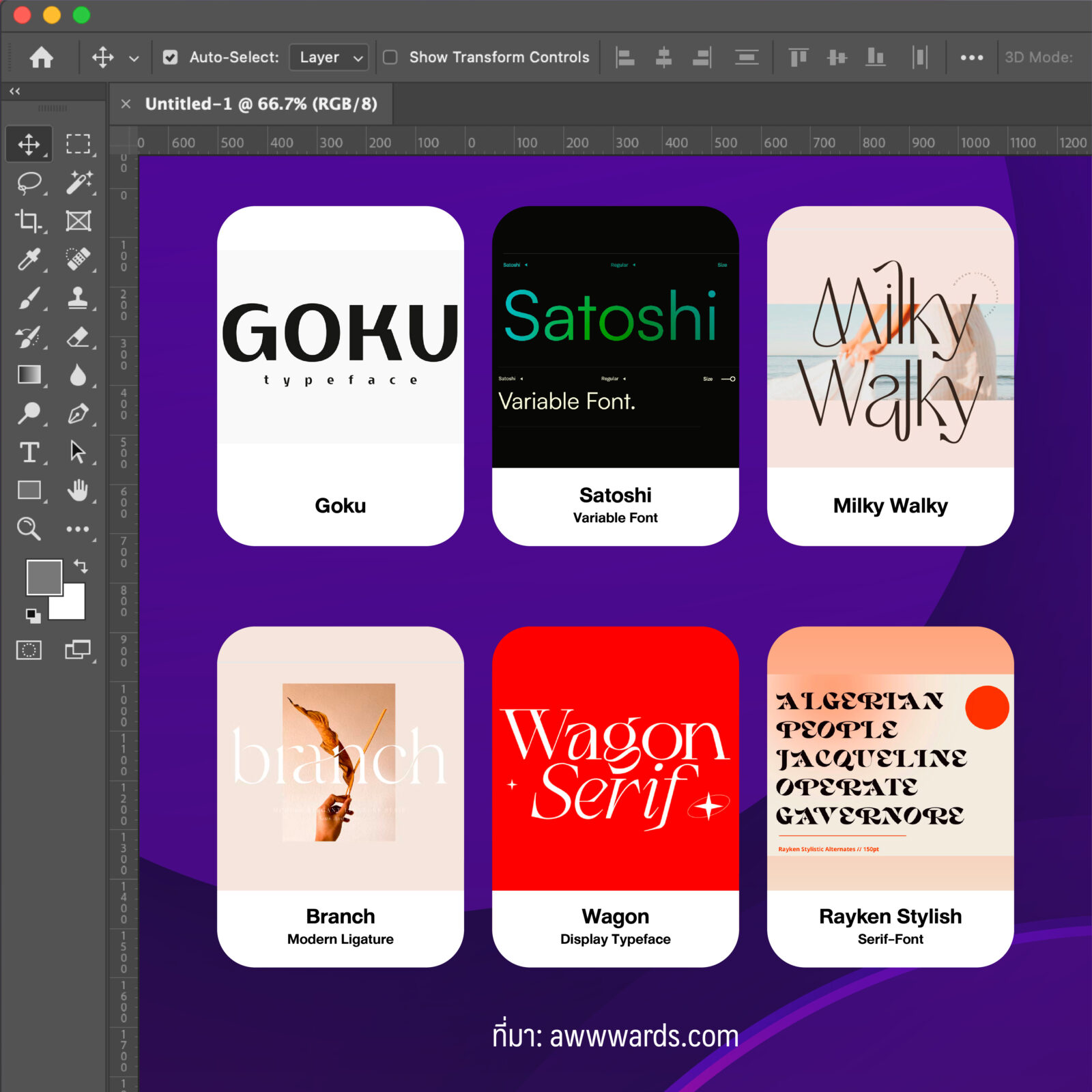 โดยฟอนต์เหล่านี้จะมาจาก awwwards จำนวน 100 ฟอนต์ ที่มีสไตล์การใช้งานให้นำไปใช้อย่างหลากหลาย เรียกได้ว่าเป็นฟอนต์ที่ถูกรวบรวมมาแล้วว่าเหมาะกับเทรนด์ในตอนนี้เป็นอย่างมาก