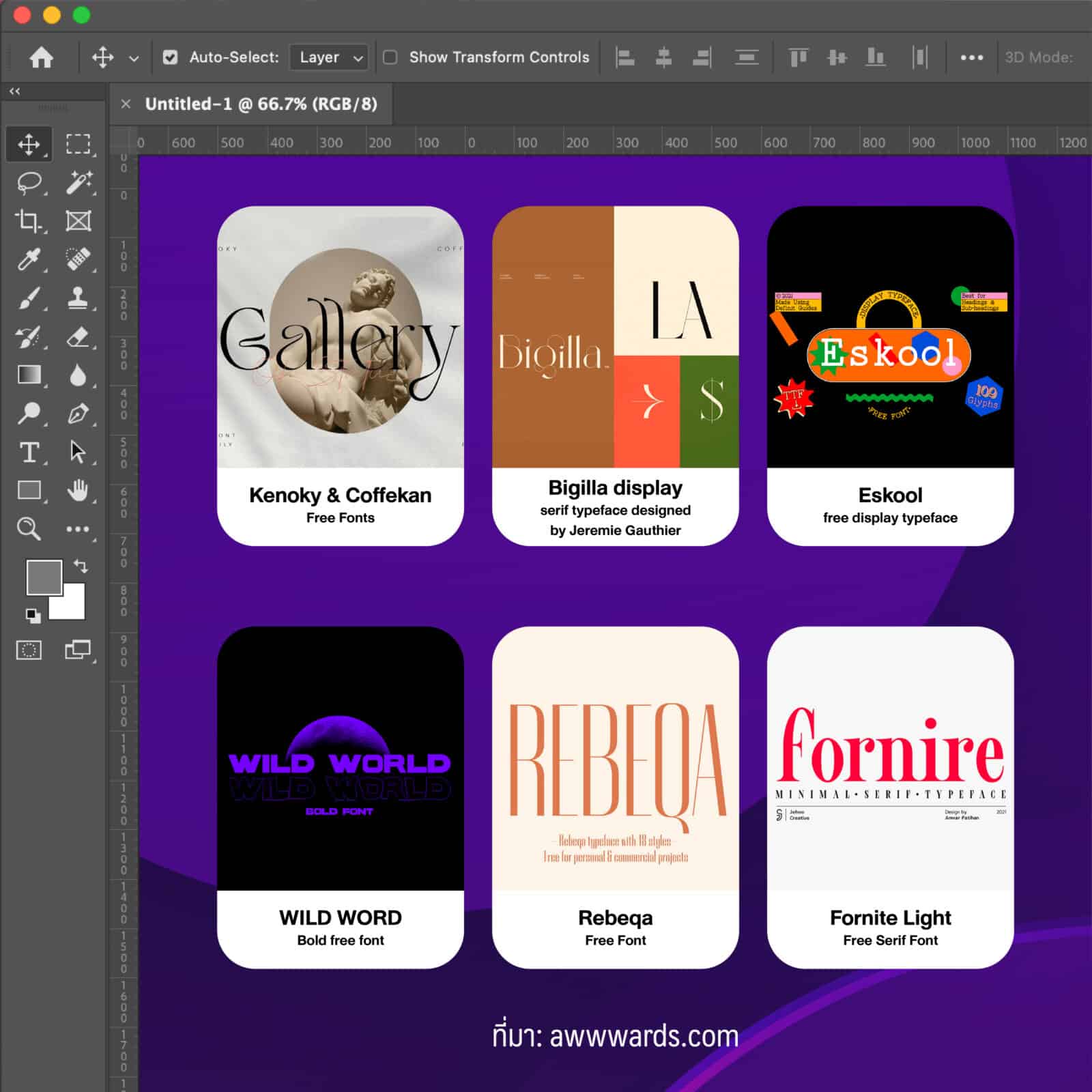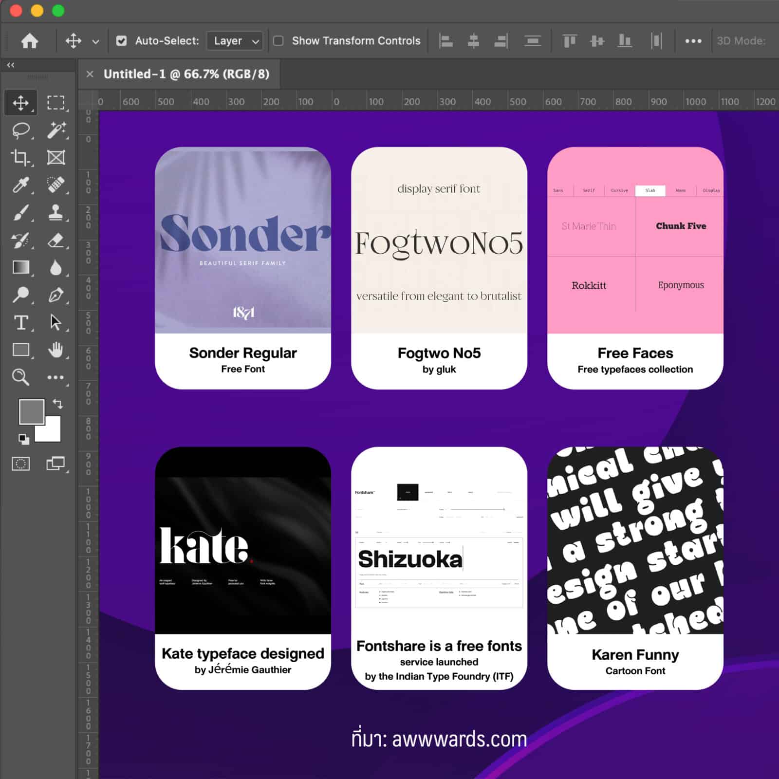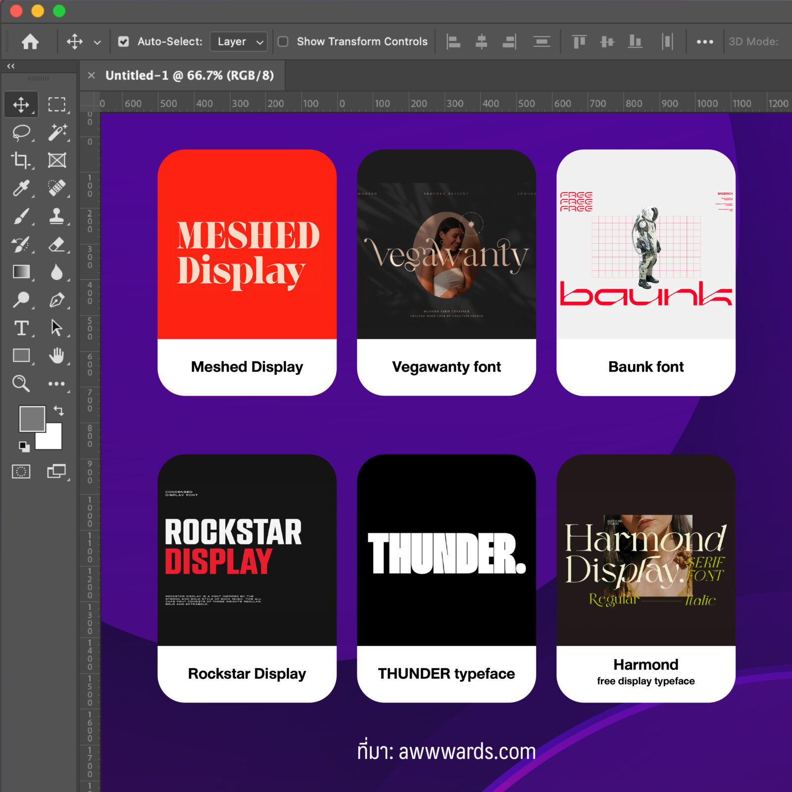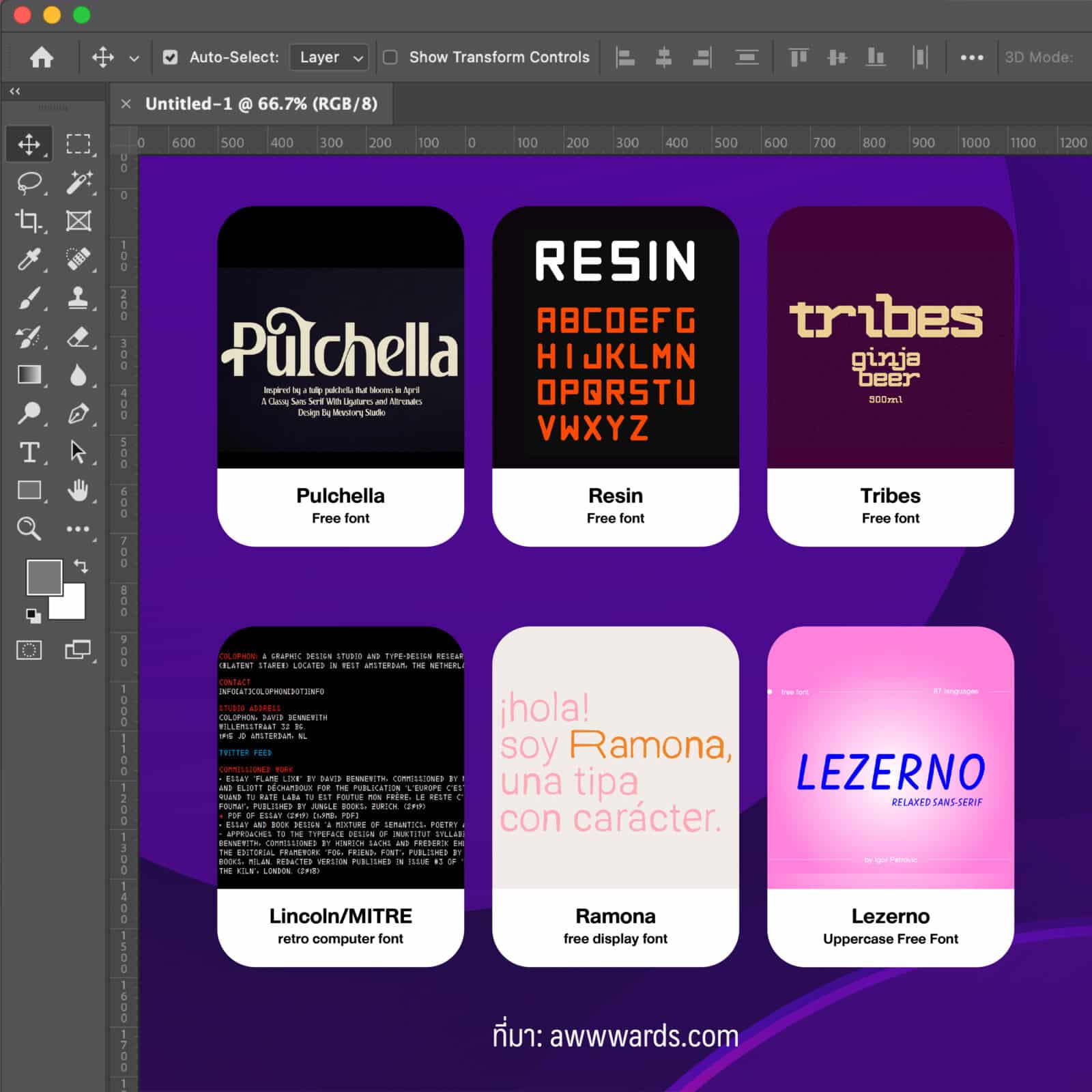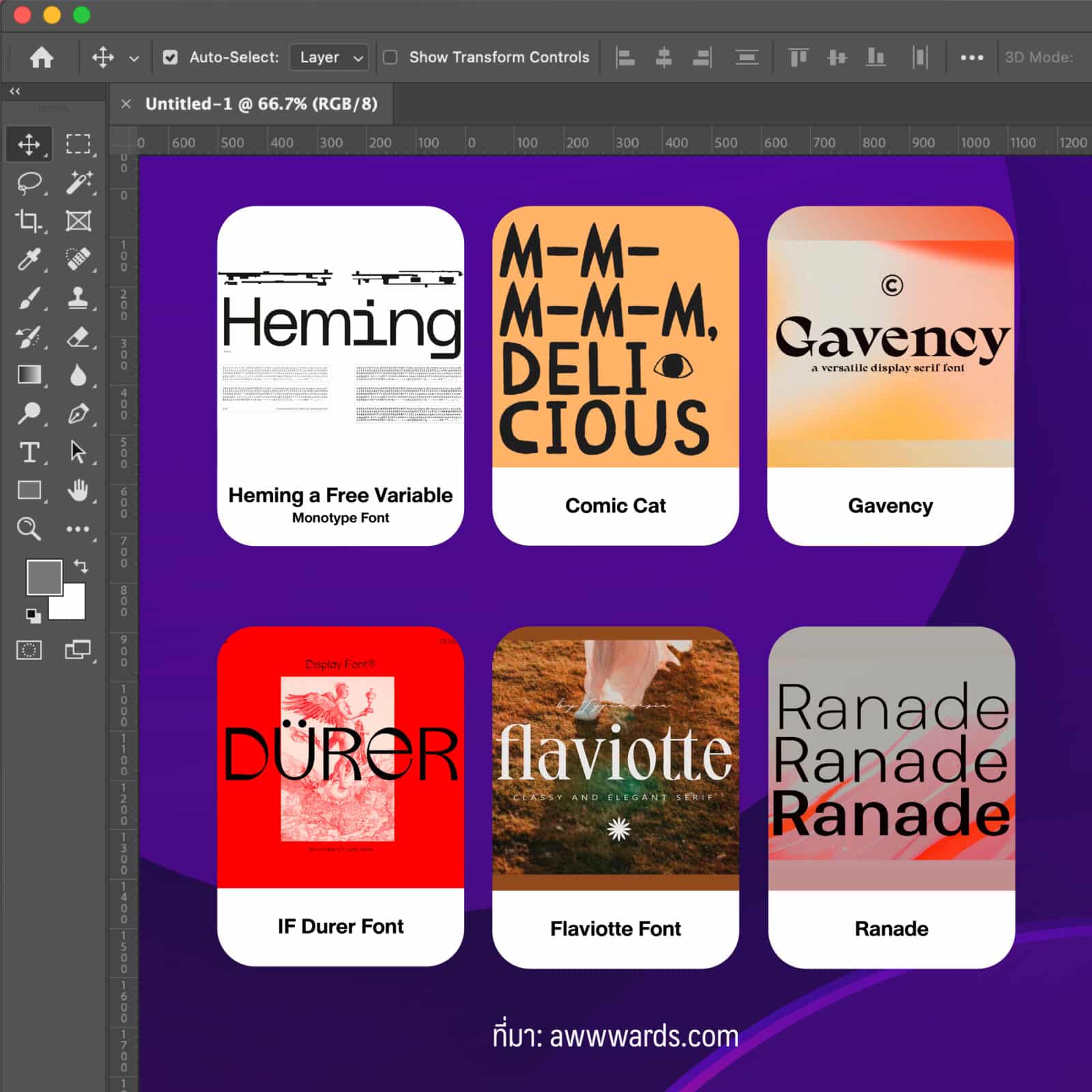 โดยฟอนต์เหล่านี้จะมาจาก awwwards จำนวน 100 ฟอนต์ ที่มีสไตล์การใช้งานให้นำไปใช้อย่างหลากหลาย เรียกได้ว่าเป็นฟอนต์ที่ถูกรวบรวมมาแล้วว่าเหมาะกับเทรนด์ในตอนนี้เป็นอย่างมาก