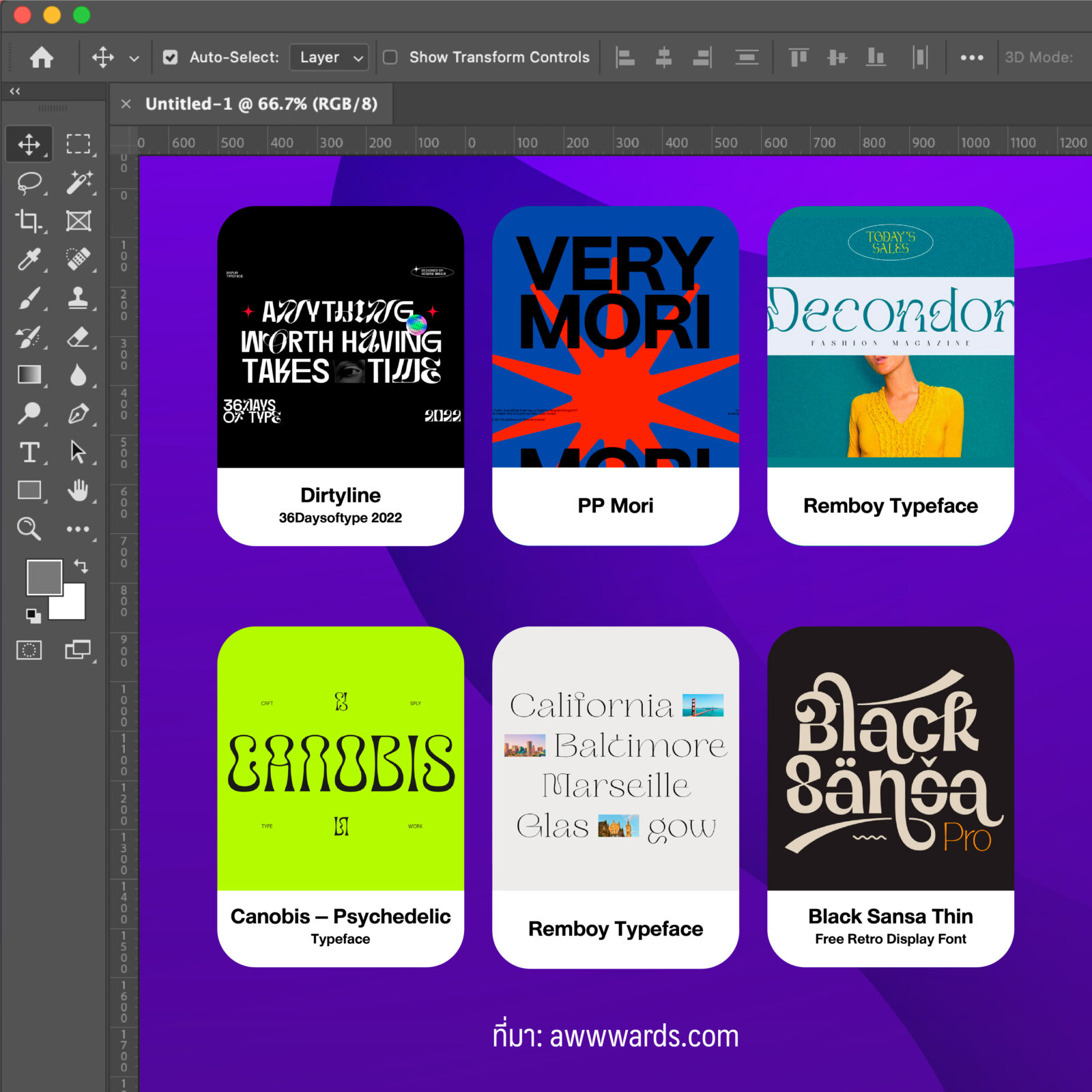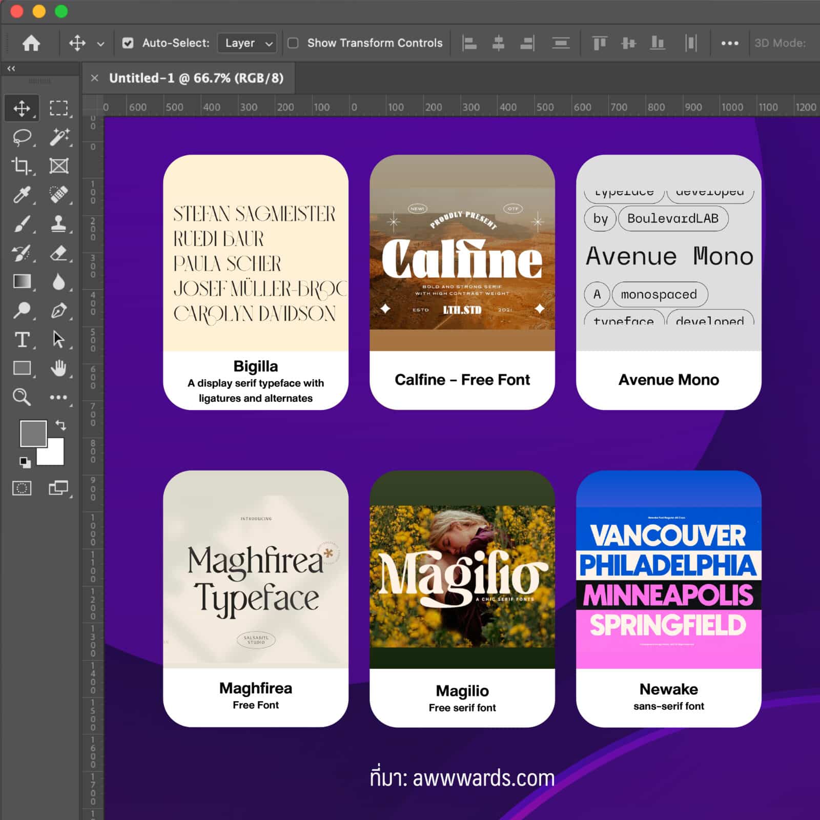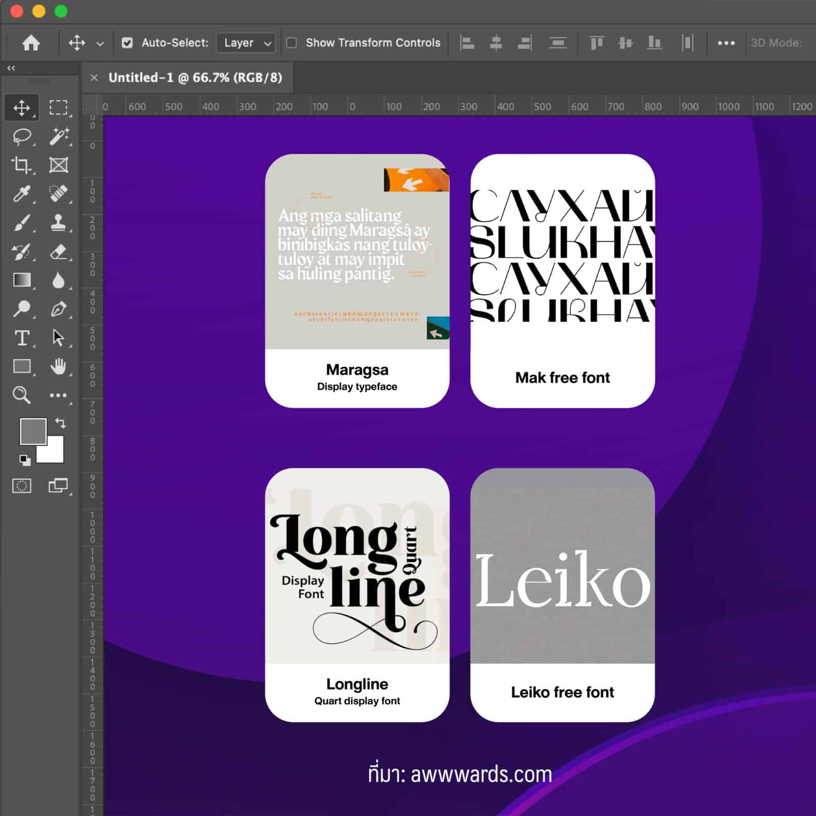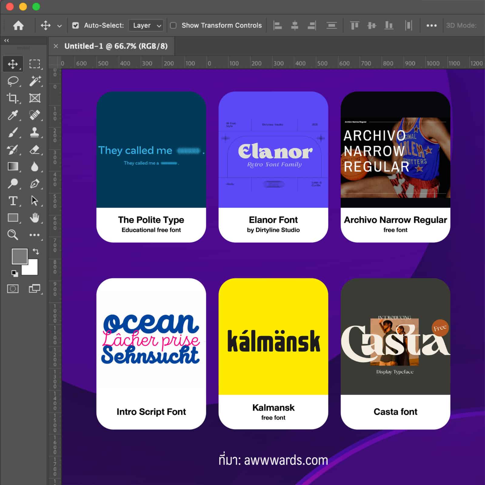 โดยฟอนต์เหล่านี้จะมาจาก awwwards จำนวน 100 ฟอนต์ ที่มีสไตล์การใช้งานให้นำไปใช้อย่างหลากหลาย เรียกได้ว่าเป็นฟอนต์ที่ถูกรวบรวมมาแล้วว่าเหมาะกับเทรนด์ในตอนนี้เป็นอย่างมาก
