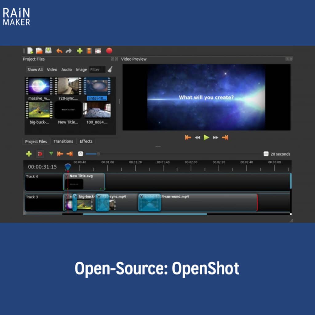 เป็นอีกหนึ่งโปรแกรม Open Source เหมาะสำหรับมือใหม่มากกว่า เพราะใช้งานง่ายมากๆ หากไม่ต้องการตัดอะไรที่มีความหวือหวามาก Openshot ก็ถือเป็นตัวเลือกที่น่าสนใจเหมือนกันค่ะ