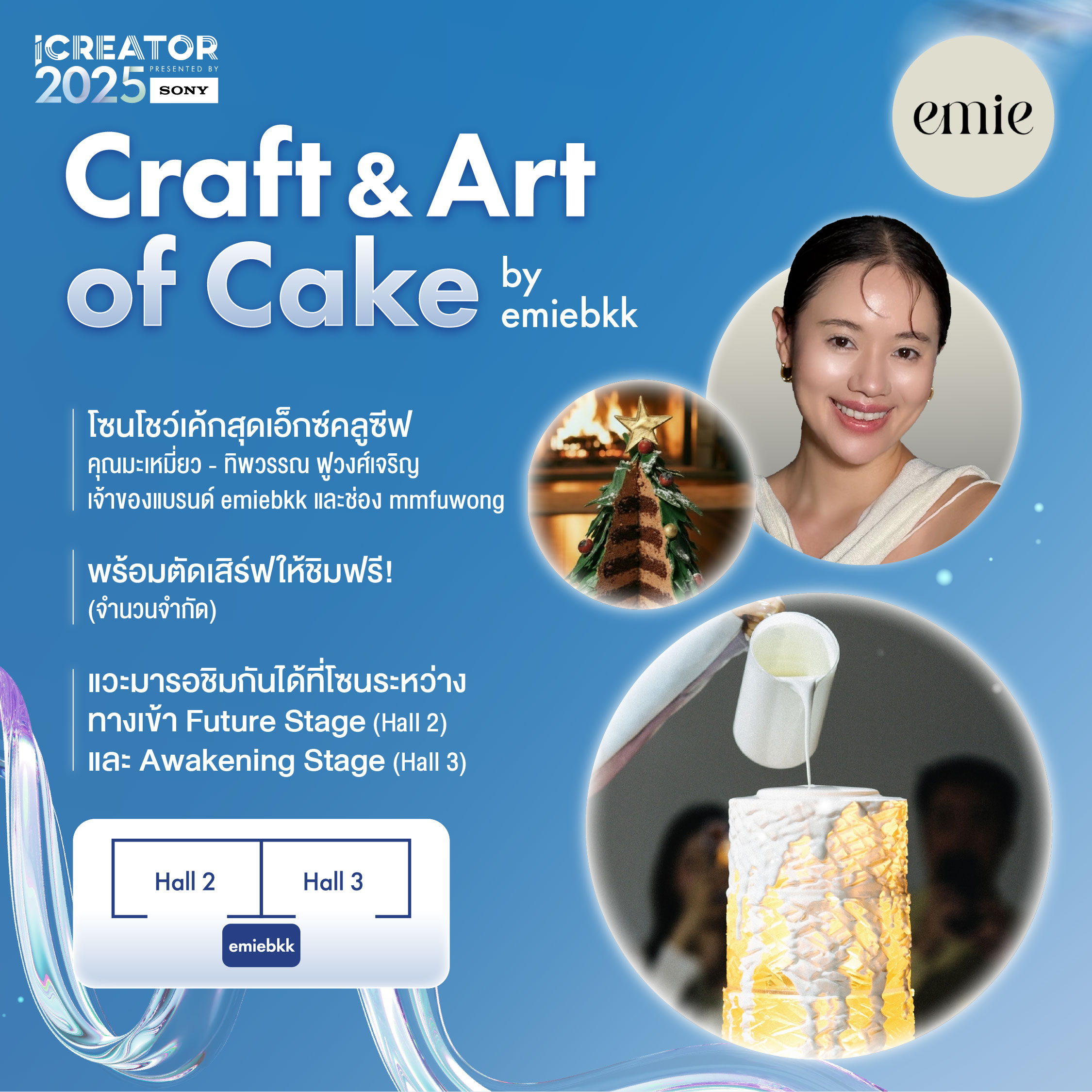 โซนโชว์ศิลปะการดีไซน์พร้อมอร่อยกับเค้กฟรี! จาก คุณมะเหมี่ยว – ทิพวรรณ ฟูวงศ์เจริญ เจ้าของแบรนด์ emiebkk และช่อง mmfuwong ผู้ที่เสกให้ทุกอย่างกลายเป็นเค้กกินได้