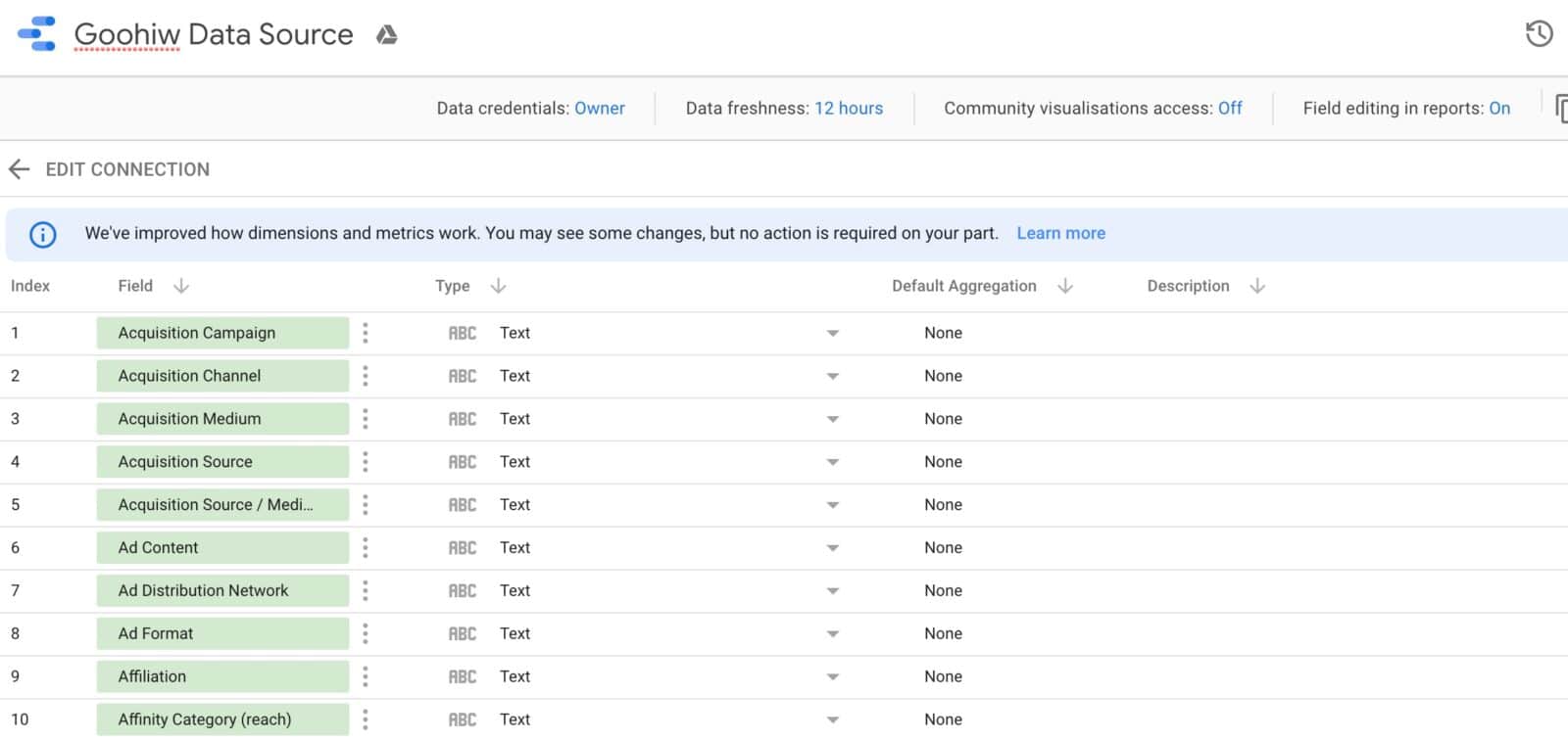 ฟีเจอร์พื้นฐานของ Google Data Studio สำหรับ Creator