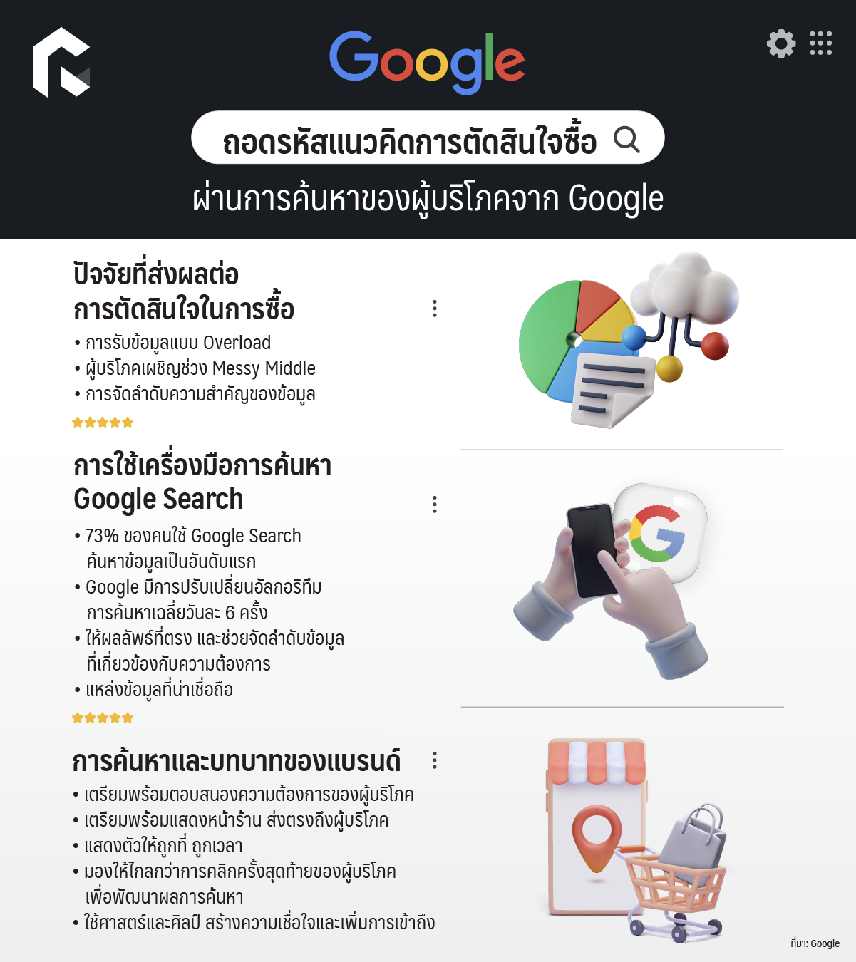 วันนี้เราเลยพามาถอดรหัสการตัดสินใจซื้อของผู้บริโภค หรือ ‘Decode Decision’ เพื่อเป็นแนวทาง และโอกาสให้กับแบรนด์ในการพัฒนาผลลัพธ์การค้นหา จะได้ไปปรากฏให้ผู้บริโภคเห็นได้ถูกที่ ถูกเวลา