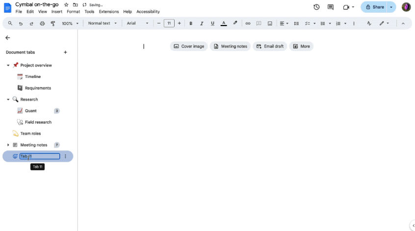 นอกจากนี้ยังสามารถใส่อิโมจิลงไปในชื่อ Tabs และเรียงลำดับหน้าใหม่ด้วยการลากหัวข้อไปไว้บริเวณที่เราต้องการ รวมถึงสามารถ Duplicate Tabs ได้อีกด้วย ซึ่งทั้งหมดนี้จะทำให้เราตั้งหัวข้อ และกดไปหน้าเอกสารเพื่อแก้ไขได้รวดเร็วขึ้น