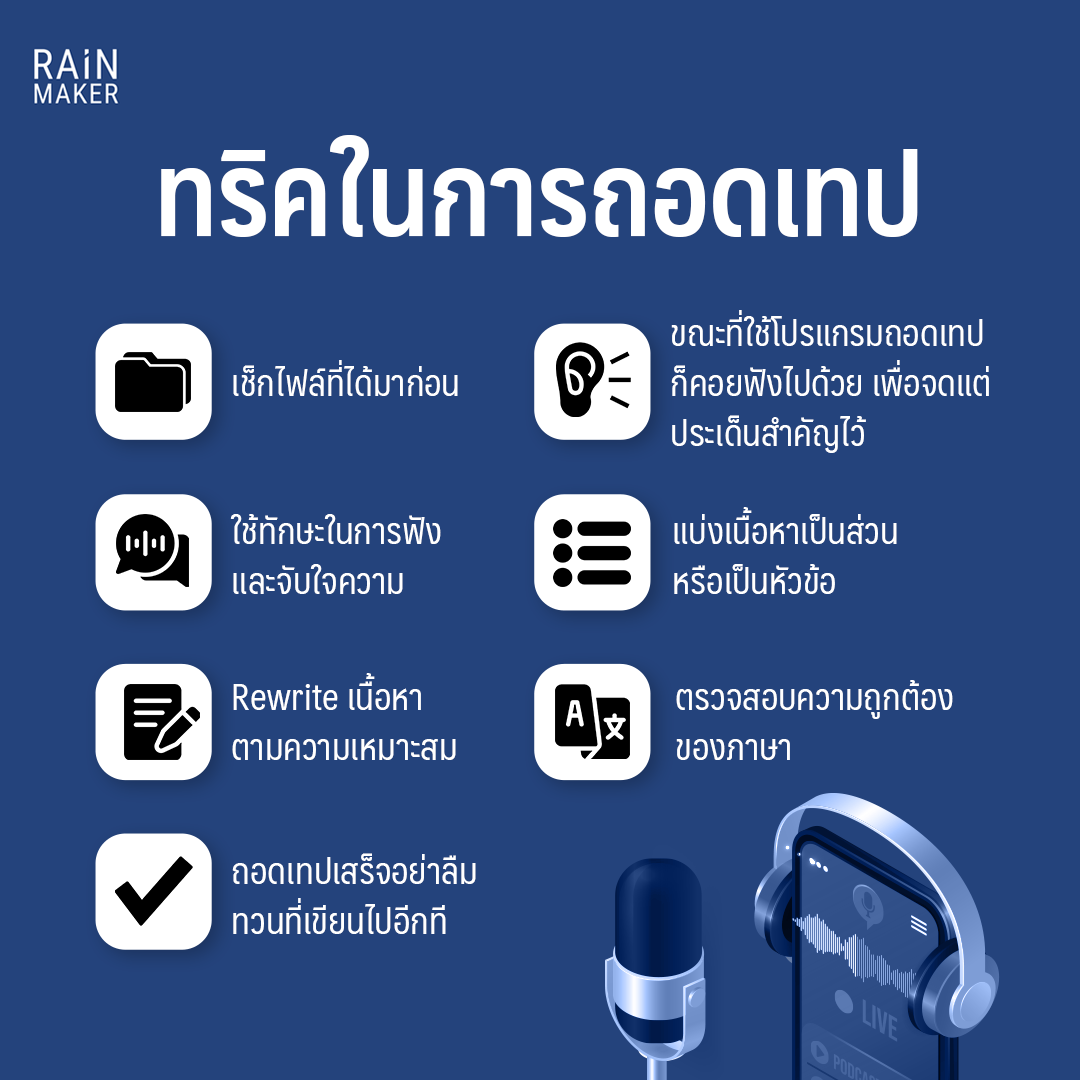- ถอดเทปเสร็จอย่าลืมทวนที่เขียนไปอีกที