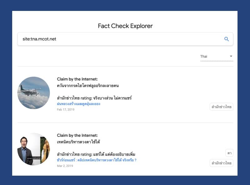 Fact Check Explorer ใช้กับภาษาไทยได้ด้วยนะ