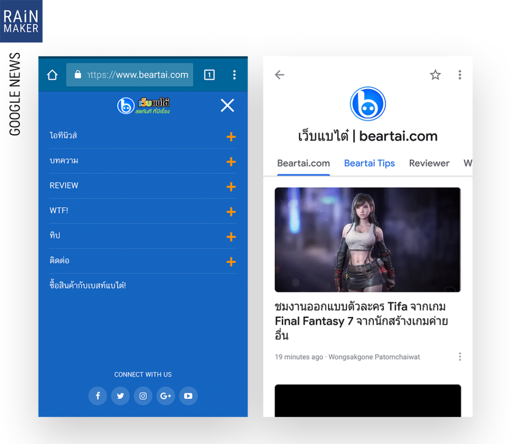 ด้านซ้าย คือเว็บแบไต๋ บน Browser ด้านขวา คือเว็บแบไต๋ บน Google News