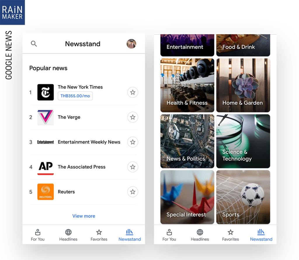 Google News ในส่วนนี้ทำงานเหมือน App Store ที่รวบรวมสำนักข่าวจากทั่วโ