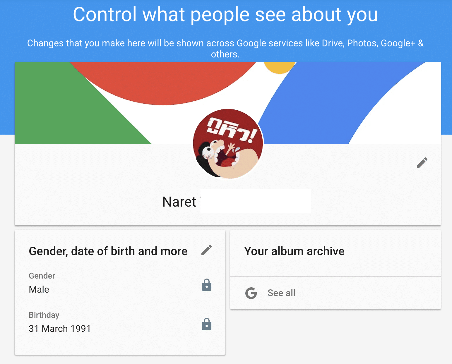 ผู้ใช้ที่มีบัญชีของ Google ทุกคน จะมีหน้า Dashboard ที่เอาไว้สำหรับจัดการข้อมูลได้ โดยเข้าไปที่ Google Account ในส่วนของ Personal Info ที่เข้าจากเมนูด้านซ้าย เราสามารถดูได้ว่าเคยใส่ข้อมูลอะไรไว้ใน account บ้าง