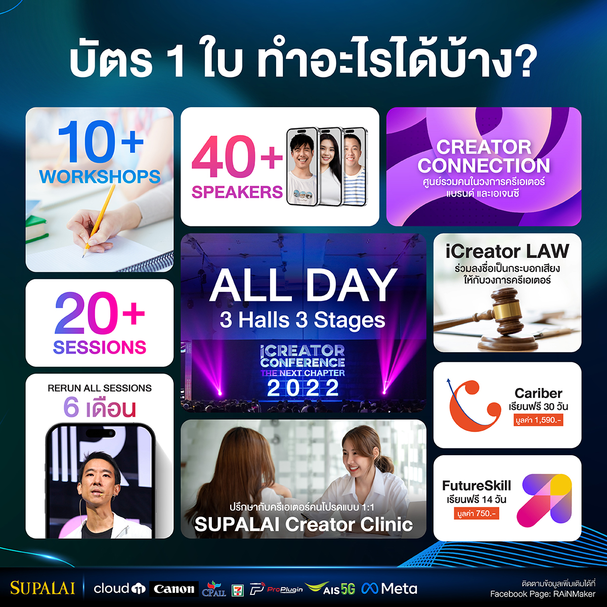 งานรวมกลุ่มคนในวงการคอนเทนต์ครีเอเตอร์ที่ใหญ่ที่สุดในประเทศไทยกลับมาอีกครั้งกับ iCreator Conference 2023 Presented by SUPALAI พร้อมธีมงาน “The Power of NEXT Gen: พลังแห่งโลกคอนเทนต์ยุคใหม่ สู่อนาคตวงการครีเอเตอร์” พร้อม 40+ Speakers 26+Sessions และ 10+Workshops!