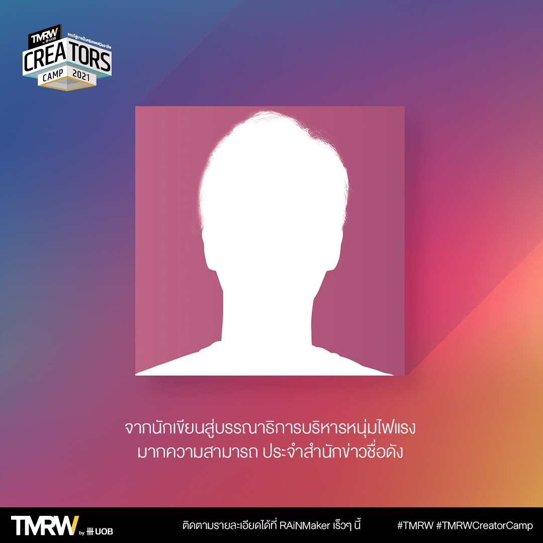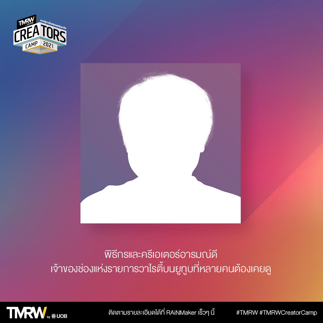 เป็นยังไงกันบ้างคะ พอจะเดาออกกันบ้างมั้นว่าเป็นครีเอเตอร์คนไหนกันบ้าง สำหรับใครที่สนใจ TMRW Creators Camp แคมป์สู่การเป็นครีเอเตอร์มืออาชีพ อดใจรอติดตามรายละเอียดได้ที่ Facebook: RAiNMaker ไม่นานเกินรอแน่นอน! #TMRWCreatorsCamp2021 #TMRW