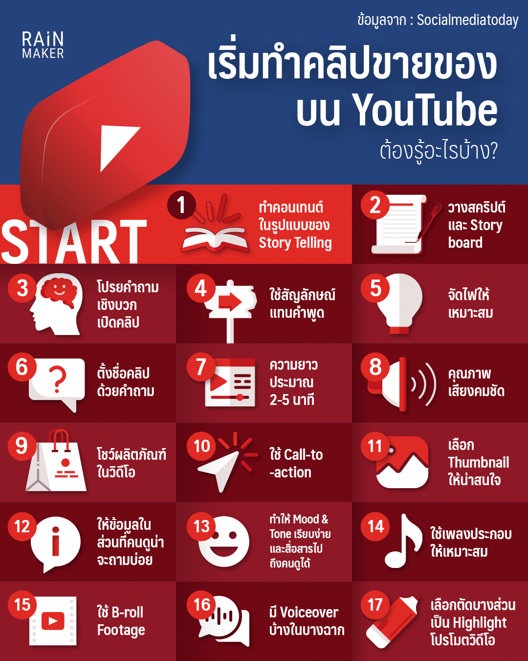 โดยหลักการต่อไปนี้สามารถนำไปปรับใช้กับการทำคลิปปกติที่ไม่ต้องการขายอะไรเลยก็ได้ เพราะนับเป็นหลักขั้นพื้นฐานที่ควรคำนึงถึงในการทำวิดีโออยู่แล้ว เพราะการทำวิดีโอไม่ใช่อยู่ดีๆ ก็จะหยิบกล้องขึ้นมาถ่ายแล้วจะได้ออกมาตามที่หวังง่ายๆ จึงต้องมีการเตรียมการก่อนที่จะสร้างวิดีโอนึงขึ้นมา เพื่อที่จะได้รู้แนวทางว่าเราจะทำคลิปออกมายังไง แล้วมันจะเหมาะกับยูทูบหรือไม่ ดังนั้นเราควรจะรู้สิ่งที่ต้องทำหลักๆ คือ