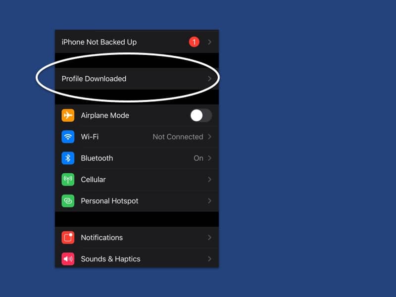 จากนั้นเข้าไปที่แอปฯ Settings จะพบเมนู Profile Downloaded เพิ่มมา ให้เรากดเข้าไป