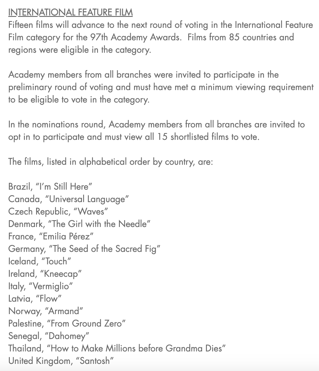 ดูรายละเอียด Shortlist เพิ่มเติมของเวทีออสการ์ได้ที่นี่: https://press.oscars.org/news/97th-oscarsr-shortlists-10-award-categories-announced