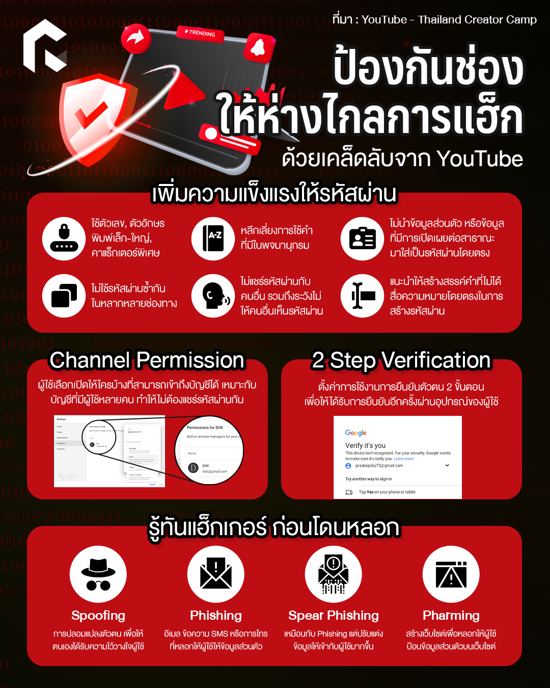 นอกจากนี้ยูทูบยังได้จัดแคมป์สุดพิเศษอย่าง ‘Thailand Creator Camp’ เพื่อแชร์เคล็ดลับต่าง ๆ สำหรับครีเอเตอร์ รวมถึงมีทริกดี ๆ สำหรับการป้องกันช่องไม่ให้ถูกแฮ็ก ที่ RAiNMaker เลือกสรุปมาให้ทุกคนในวันนี้ด้วยค่ะ เตรียมกระดาษให้พร้อมแล้วไปเช็กลิสต์กันพร้อม ๆ กันเลย!
