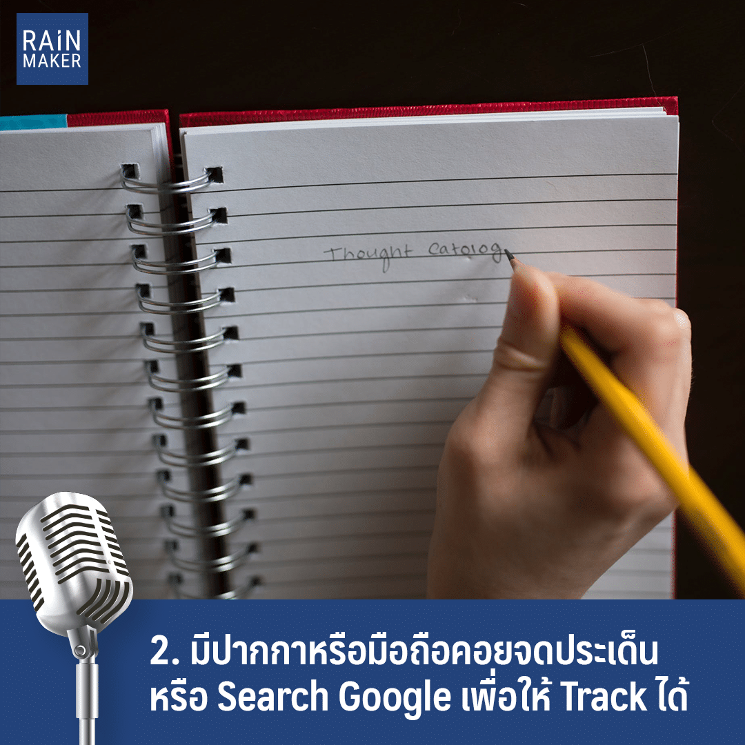 2. มีปากกาหรือมือถือคอยจดประเด็น หรือ Search Google เพื่อให้ Track ได้