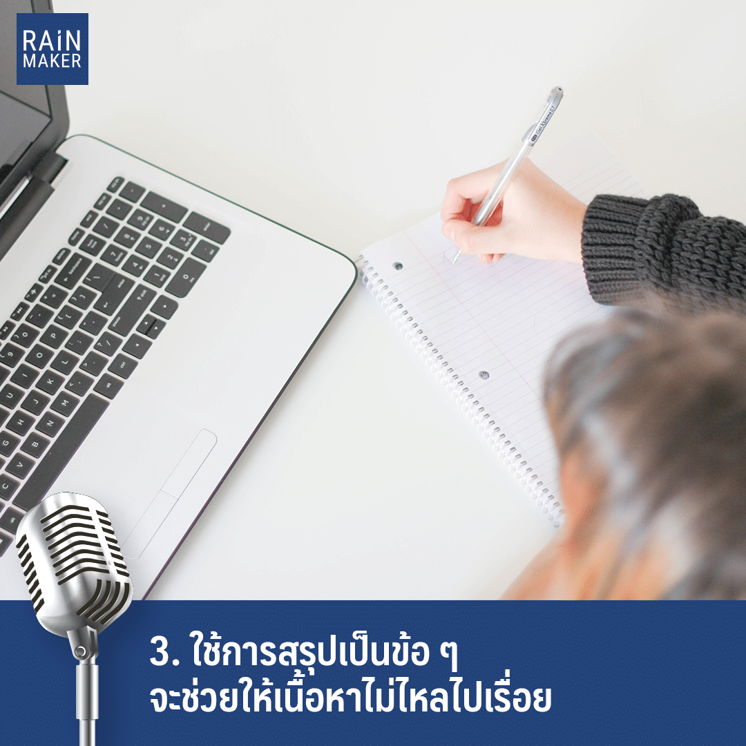 3. ใช้การสรุปเป็นข้อ ๆ จะช่วยให้เนื้อหาไม่ไหลไปเรื่อย
