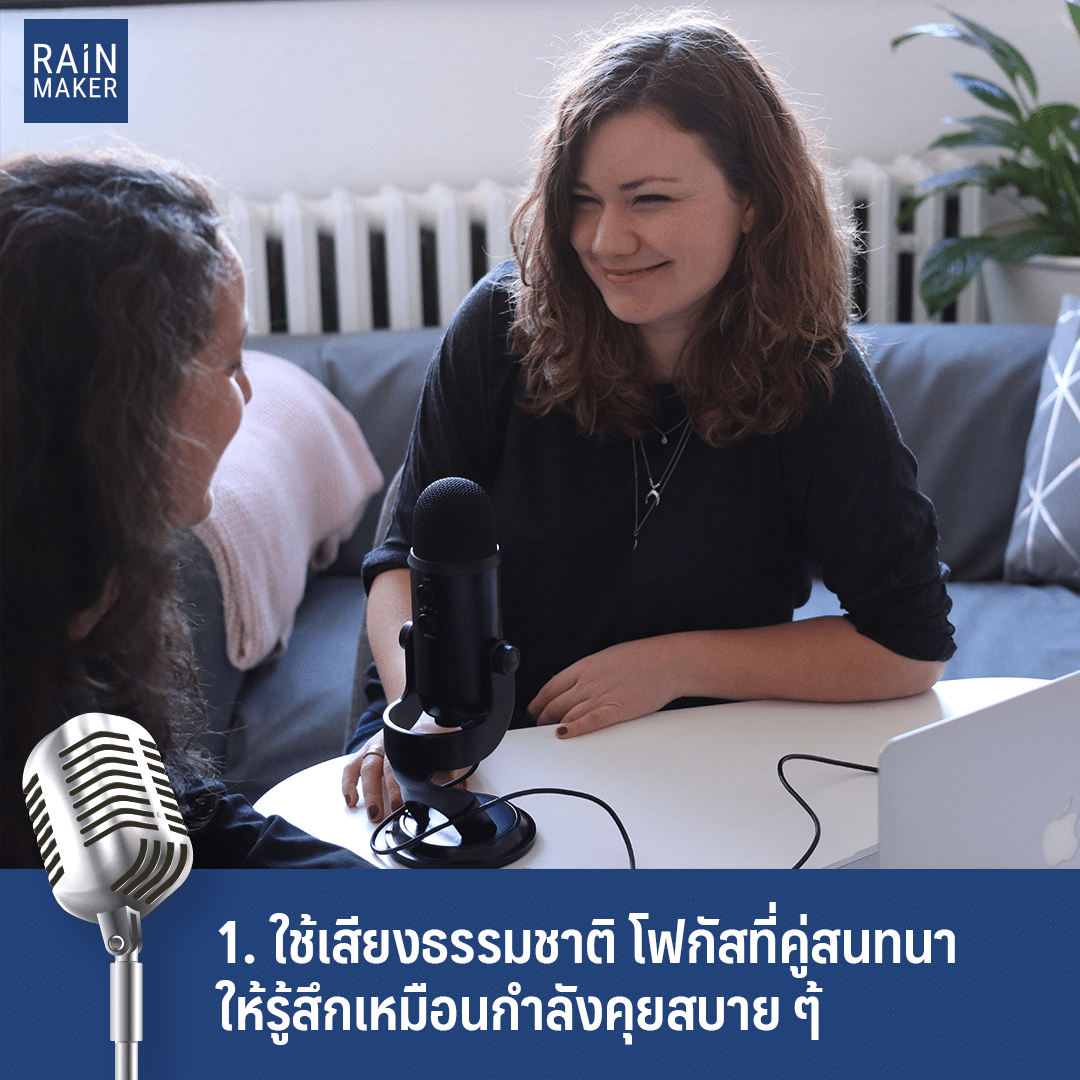 1. ใช้เสียงธรรมชาติ โฟกัสที่คู่สนทนา ให้รู้สึกเหมือนกำลังคุยสบาย ๆ