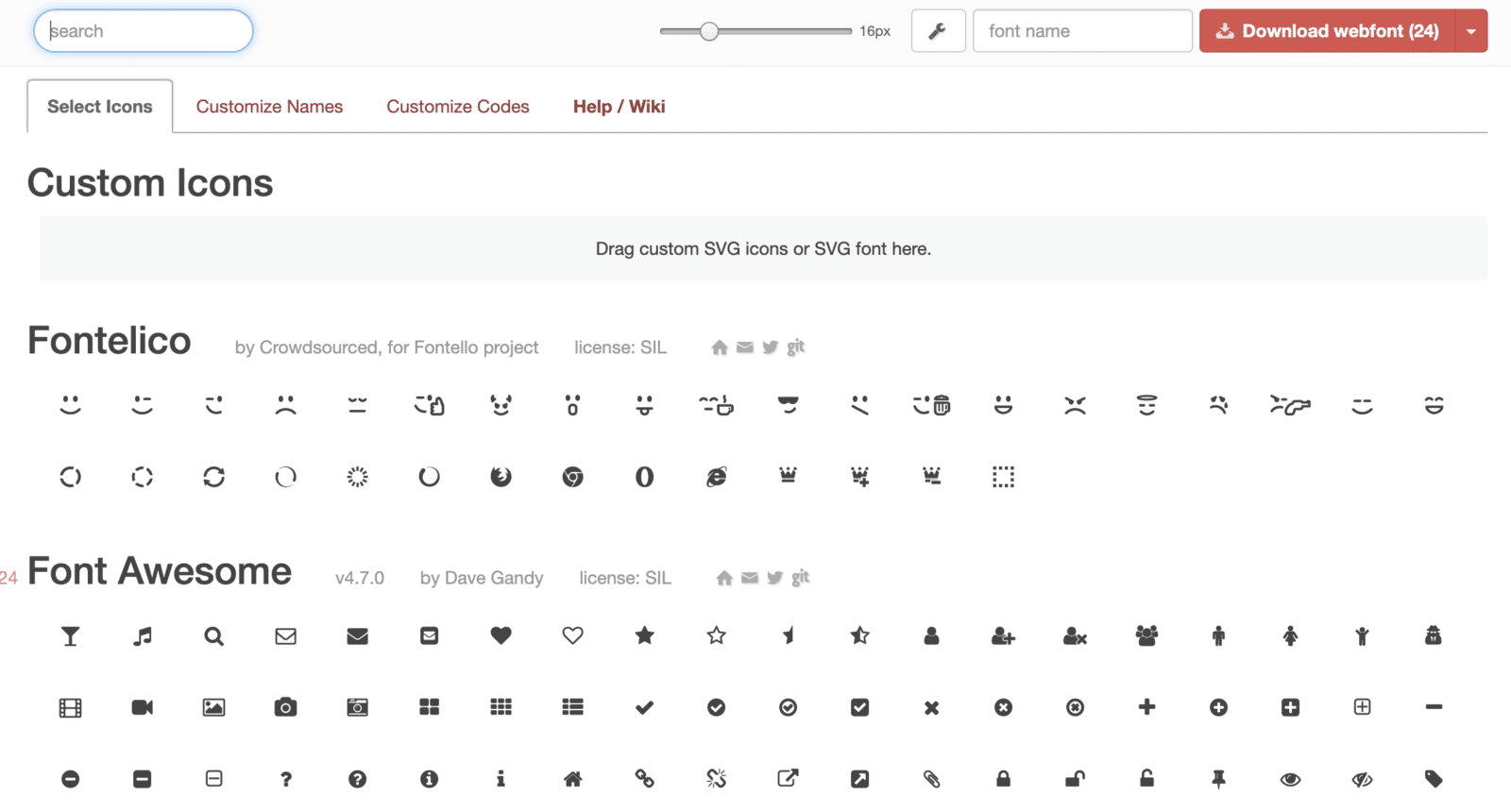 สามารถนำ icon ที่เป็นไฟล์ .svg อัปโหลดขึ้นไปเพื่อแปลงเป็น font สำหรับใช้งานได้ด้วย อันนี้แจ่ม