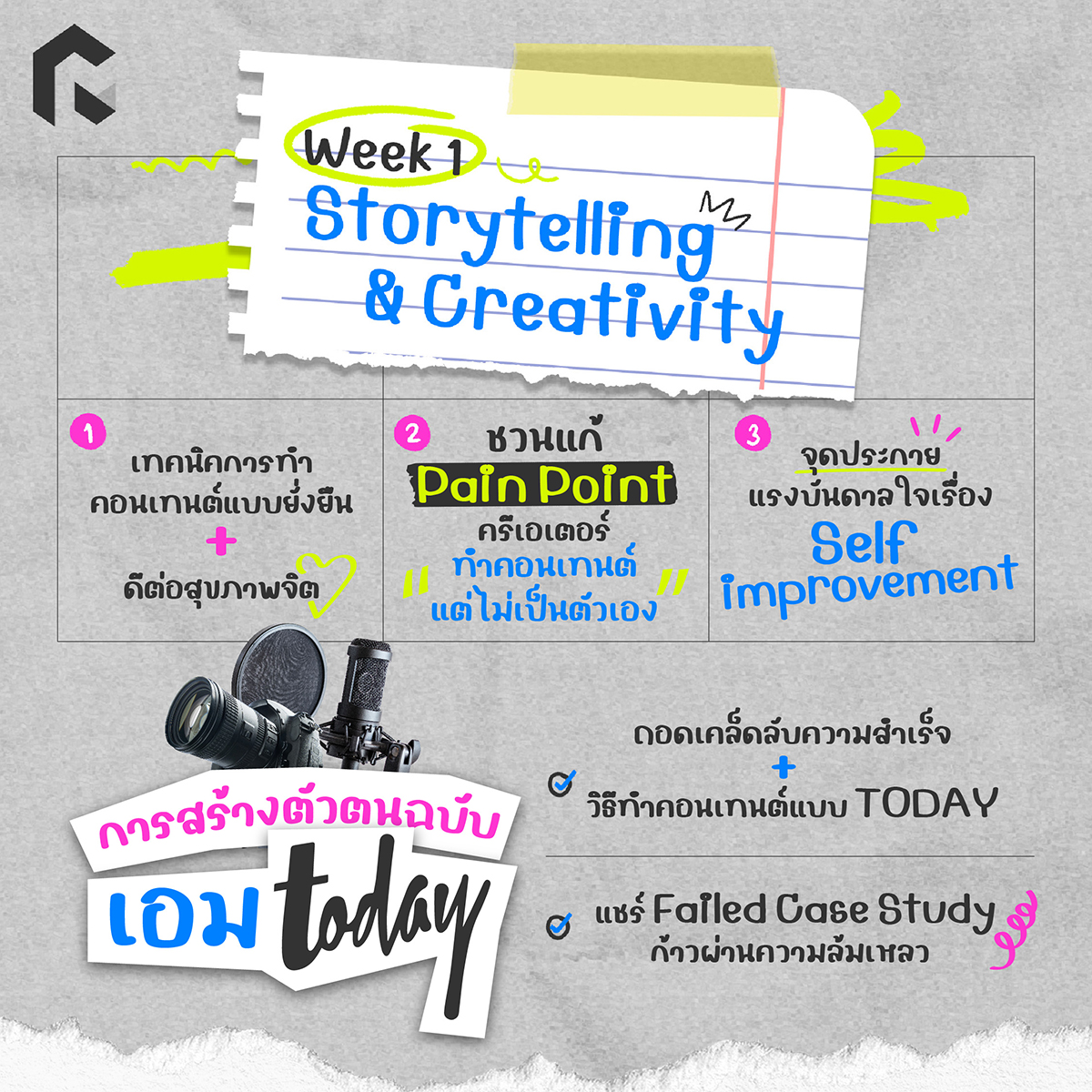 ก่อนจะเริ่มทำคอนเทนต์ ก็ต้องมีการวางแนวทาง สร้าง Storytelling เพื่อหาจุดยืนคอนเทนต์ของตัวเองในตลาด และสร้างความแตกต่างให้คนจดจำได้ดีมากขึ้น ซึ่งคุณเอมในฐานะบรรณาธิการ TODAY ที่เป็นคนปูแนวทาง รวมถึงคอยจัดการภาพรวมคอนเทนต์ในแบบของ TODAY ก็มาพร้อมเคล็ดลับเบื้องหลังในการทำคอนเทนต์สำหรับสื่อออนไลน์ยุคใหม่ เตรียมส่งต่อให้เหล่าครีเอเตอร์ทั้ง 100 คน