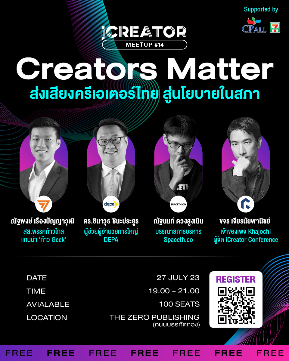 มาร่วมส่งเสียงของคนทำคอนเทนต์ให้ไปถึงสภาด้วยกัน ที่งาน iCreator Meetup #14 วันที่ 27 กรกฎาคมนี้ ที่เดิม เวลาเดิม หวังว่าจะได้เจอทุกคนในวันงานนะคะ!