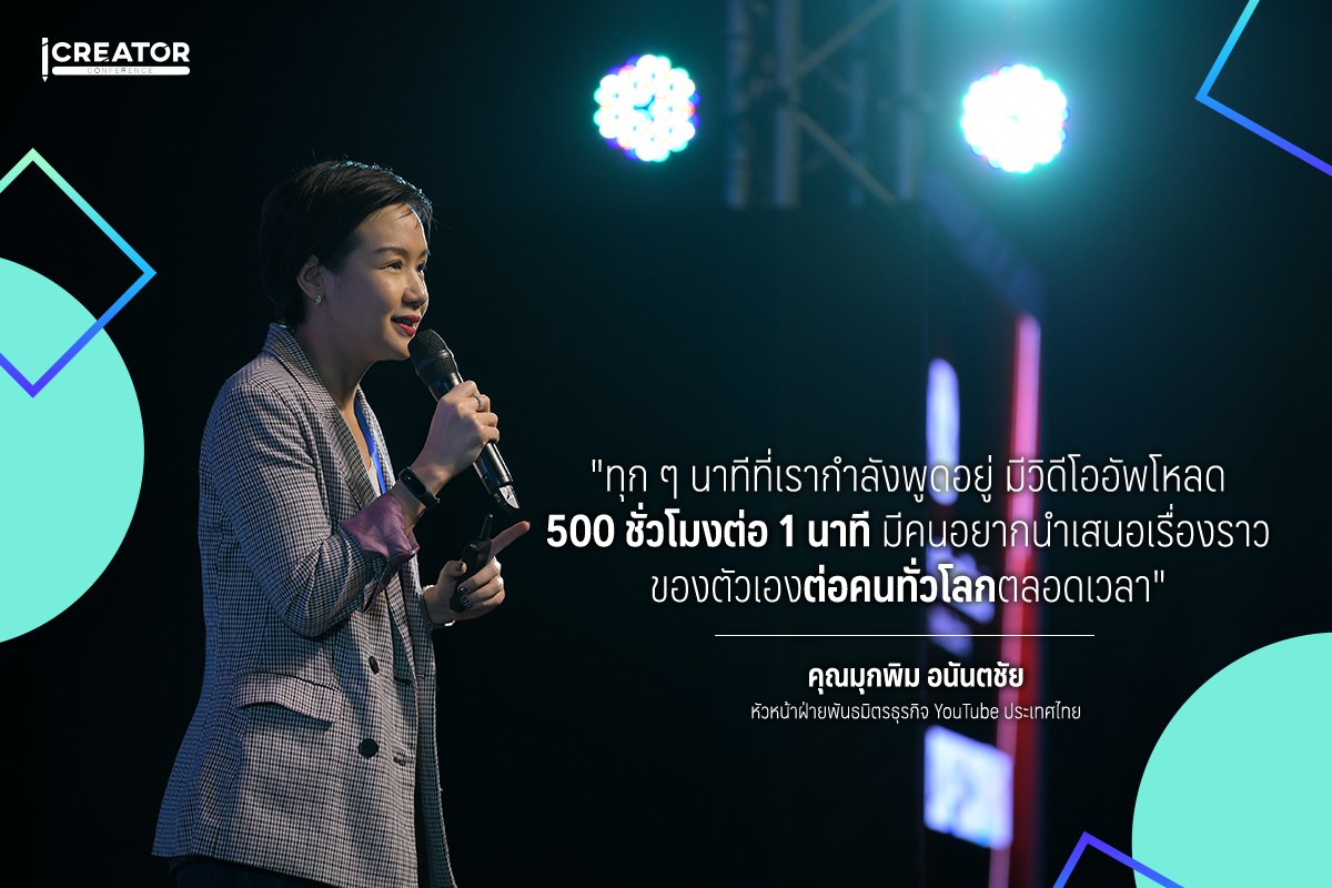 คุณมุกพิม อนันตชัย หัวหน้าฝ่ายพันธมิตรธุรกิจ YouTube ประเทศไทย ขึ้นเวทีงาน iCreator Conference 2019 ไม่ใช่แค่เพื่อยืนยันเรื่องนี้ แต่ยังเพื่อบอกเราว่า YouTube อยู่ตรงไหนในโลกออนไลน์ ณ เวลานี้ YouTube ไม่ใช่เพียงแพลตฟอร์มที่ให้คนมาโยนวิดีโอลง แล้วก็รอให้คนมาดู แต่ยังเป็นแรงบันดาลใจให้คนอยากจะเล่าเรื่องของตัวเอง