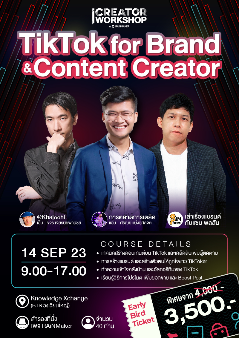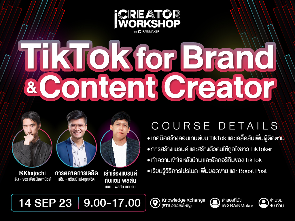 iCreator Workshop: TikTok for Brand & Content Creator สร้างคอนเทนต์ให้ปัง เพิ่มผู้ติดตามให้แบรนด์บน TikTok กลับมาอีกครั้งเป็นรุ่นที่ 5 แล้ว! ใครอยากมาอัปเดตเทรนด์ เรียนรู้อัลกอริทึมสำหรับสร้างคอนเทนต์ ห้ามพลาด!