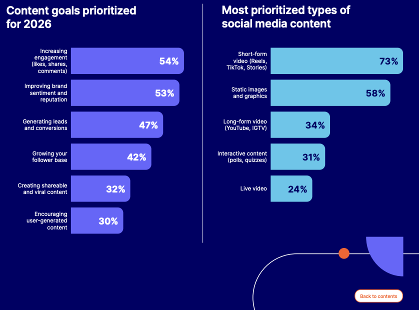 • Short-form Video (Reels, TikTok, Stories): 73%