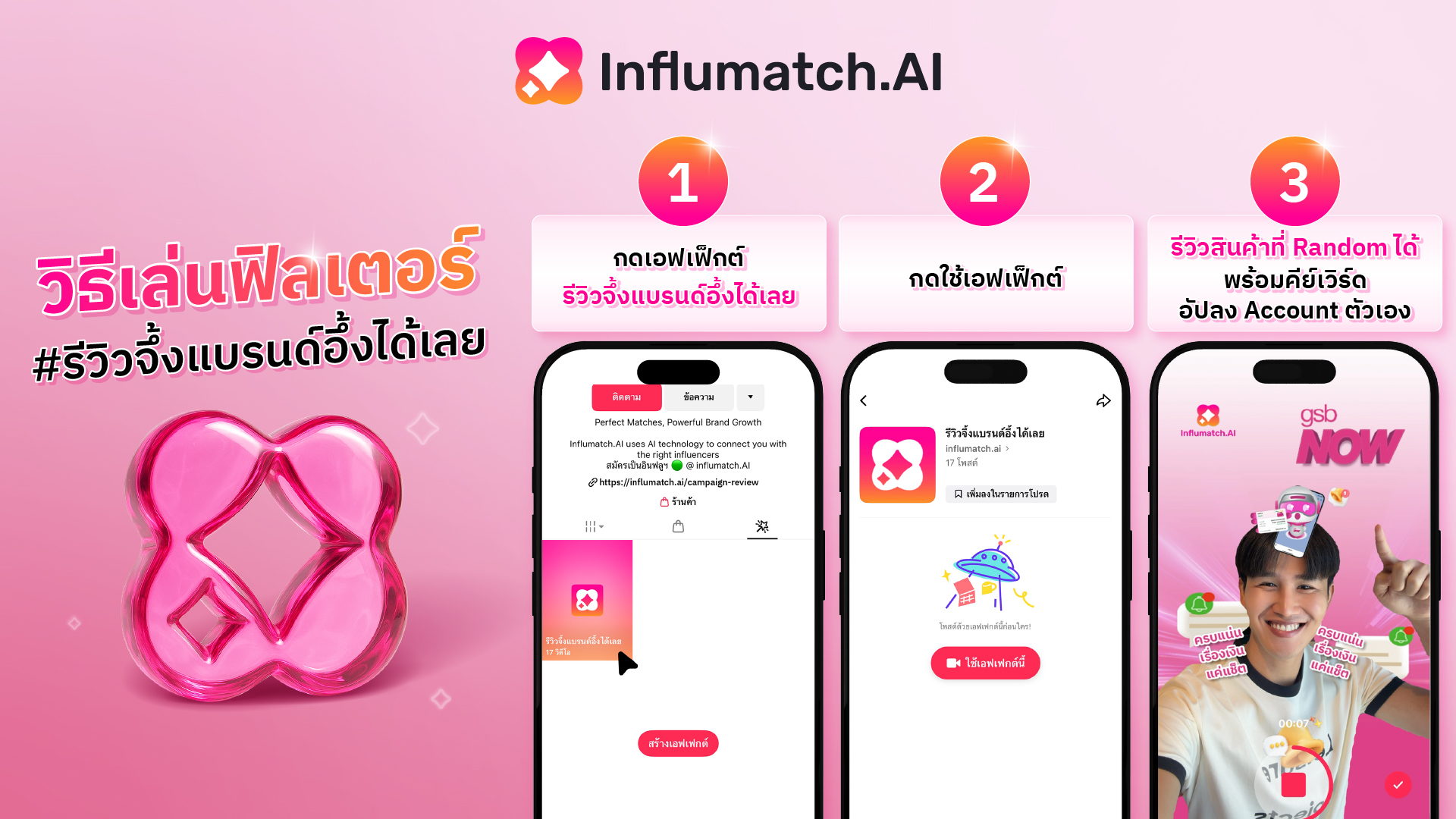 อยากเป็นอินฟลูเอนเซอร์แต่ยังไม่รู้จะเริ่มต้นยังไงตอนนี้มีเวทีให้ลองแล้ว กับแคมเปญ “#รีวิวจึ้งแบรนด์อึ้งได้เลย” บนฟิลเตอร์ TikTok ที่ออกแบบมาให้โชว์สกิลรีวิวแบบจัดเต็ม เพียงแค่มีสมาร์ตโฟนและ TikTok ก็เริ่มได้ทันที โอกาสดี ๆ จาก ‘Influmatch.AI’ แพลตฟอร์มจับคู่อินฟลูเอนเซอร์กับแบรนด์ที่ RAiNMaker อยากชวนทุกคนเข้าร่วม