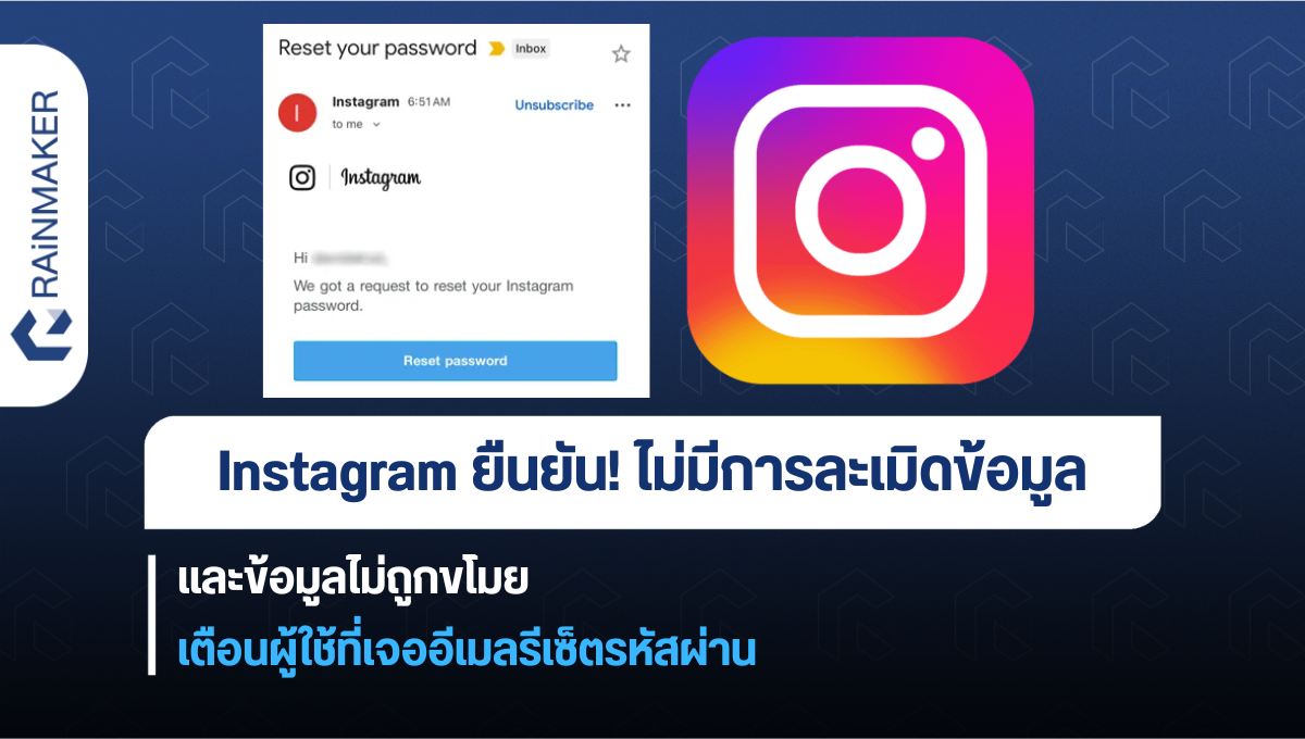 ในสถานการณ์ที่หลายคนอาจจะได้รับอีเมลจาก Instagram ขอให้รีเซ็ตรหัสโดยที่ไม่ได้ส่งคำร้องไปทางแพลตฟอร์ม ก็ทำให้เกิดความกังวลว่าอาจมีการถูกแฮกข้อมูลหรือถูกระบบโจมตีแอ็กเคานต์ แต่ Instagram ก็ได้ออกมาบอกแล้วว่าระบบได้ถูกแก้ไขแล้ว