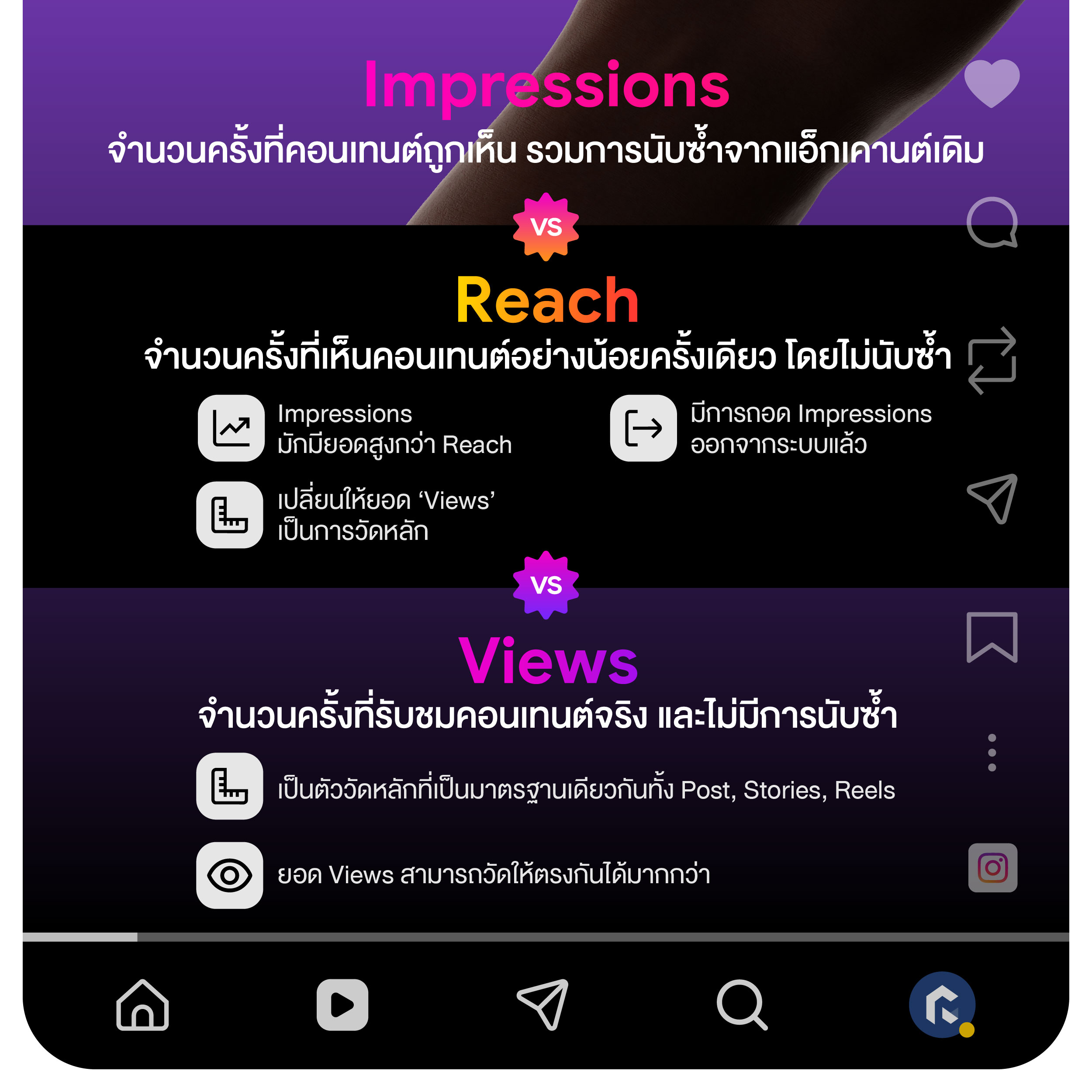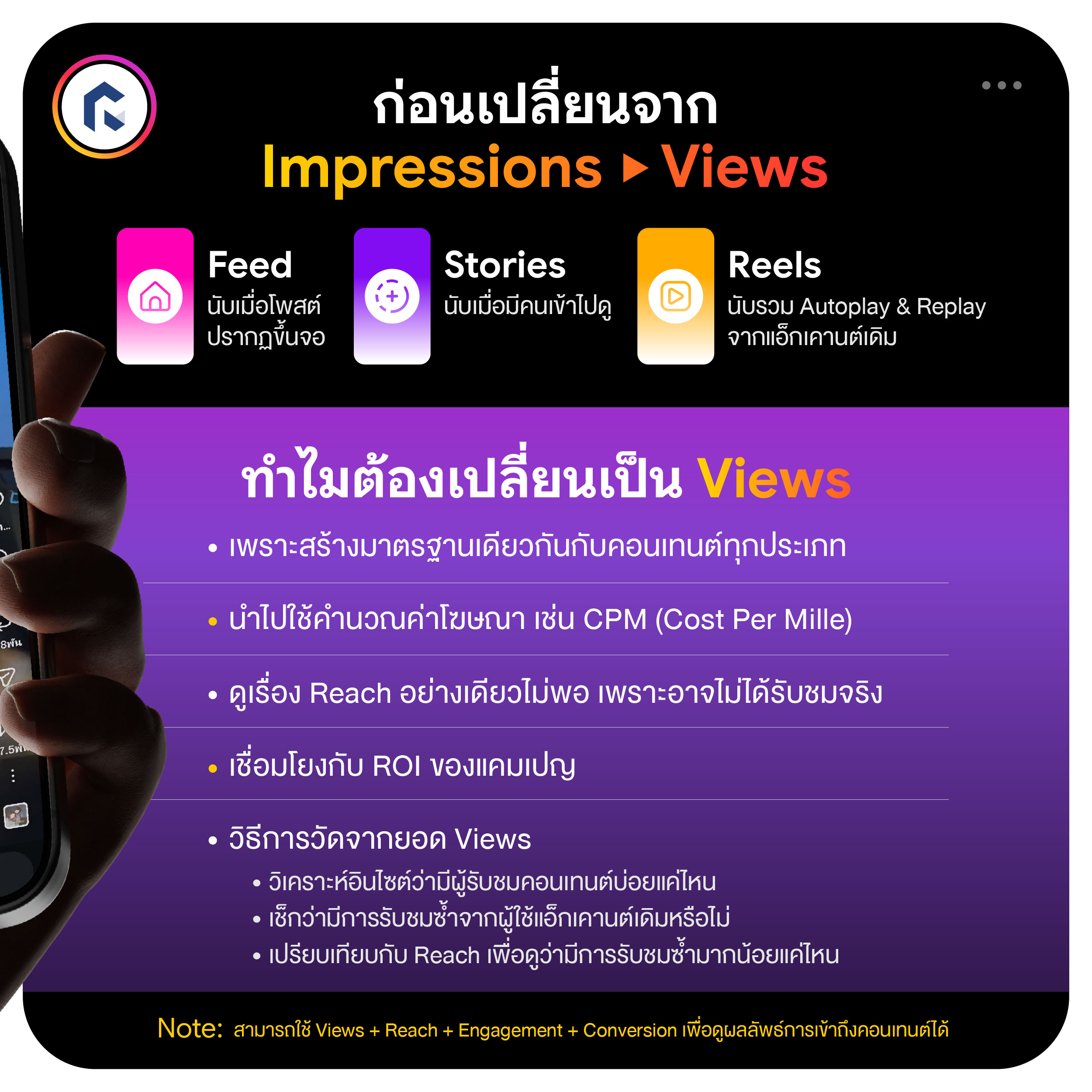 • เป็นตัววัดหลักที่เป็นมาตรฐานเดียวกันทั้ง Post, Stories, Reels