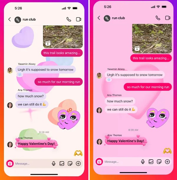 โดย Instagram ได้เพิ่มฟีเจอร์ต้อนรับวาเลนไทน์ทั้งบน DM และ Stories ดังนี้