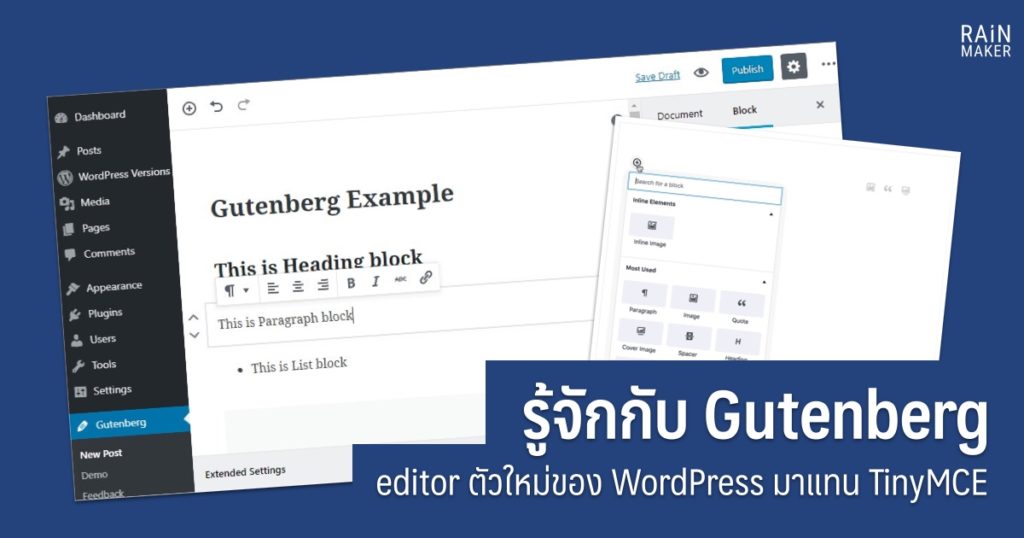 รู้จักกับ Gutenberg สุดยอด editor ตัวใหม่ของ WordPress มาแทน TinyMCE