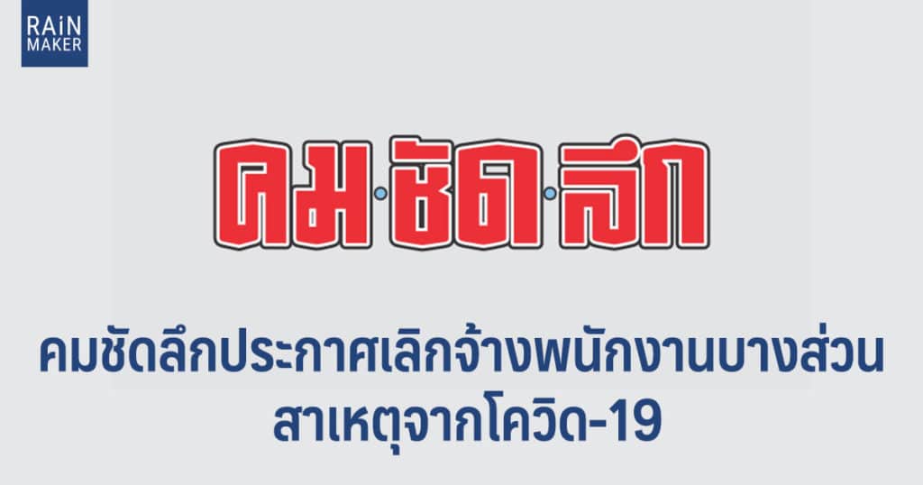 โควิด-19 ไม่หยุดพ่นพิษ ล่าสุดบริษัท คมชัดลึก มีเดีย จำกัด ทำหนังสือเลิกจ้างถึงพนักงานบางส่วน สาเหตุเกิดจาก ไวรัสตัวนี้ได้สร้างผลกระทบต่อเศรษฐกิจของประเทศและการดำเนินธุรกิจของบริษัทอย่างรุนแรง จึงจำเป็นต้องลดค่าใช้จ่ายลง โดยมีผลตั้งเเต่ 1 พ.ค. 63 และมีการจ่ายค่าชดเชย 10 เดือน ตามกฎหมาย