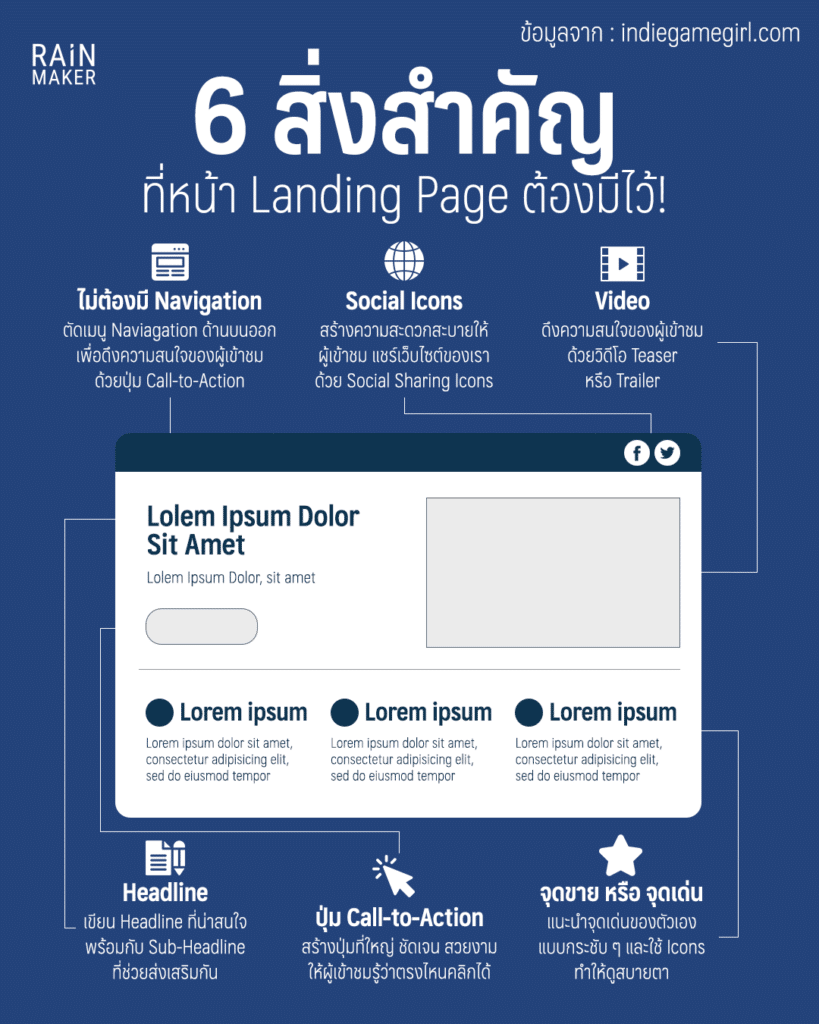 สิ่งที่ควรมีอย่างยิ่ง คือปุ่ม Call To Action ควรมีความชัดเจนไปเลยว่าอยากจะให้เขาทำอะไรต่อจากหน้านี้ ในปัจจุบันระบุว่าควรมีปุ่ม CTA แค่ปุ่มเดียวใน Landing Page เพื่อป้องกันการเกิดความสับสน
