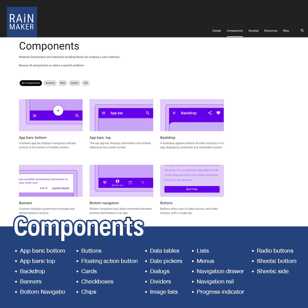 นอกจากนี้ยังมี Material ที่แนะนำทั้งดีไซน์ และองค์ประกอบต่างๆ บนทั้ง iOS Andriod และ Web อีกด้วย