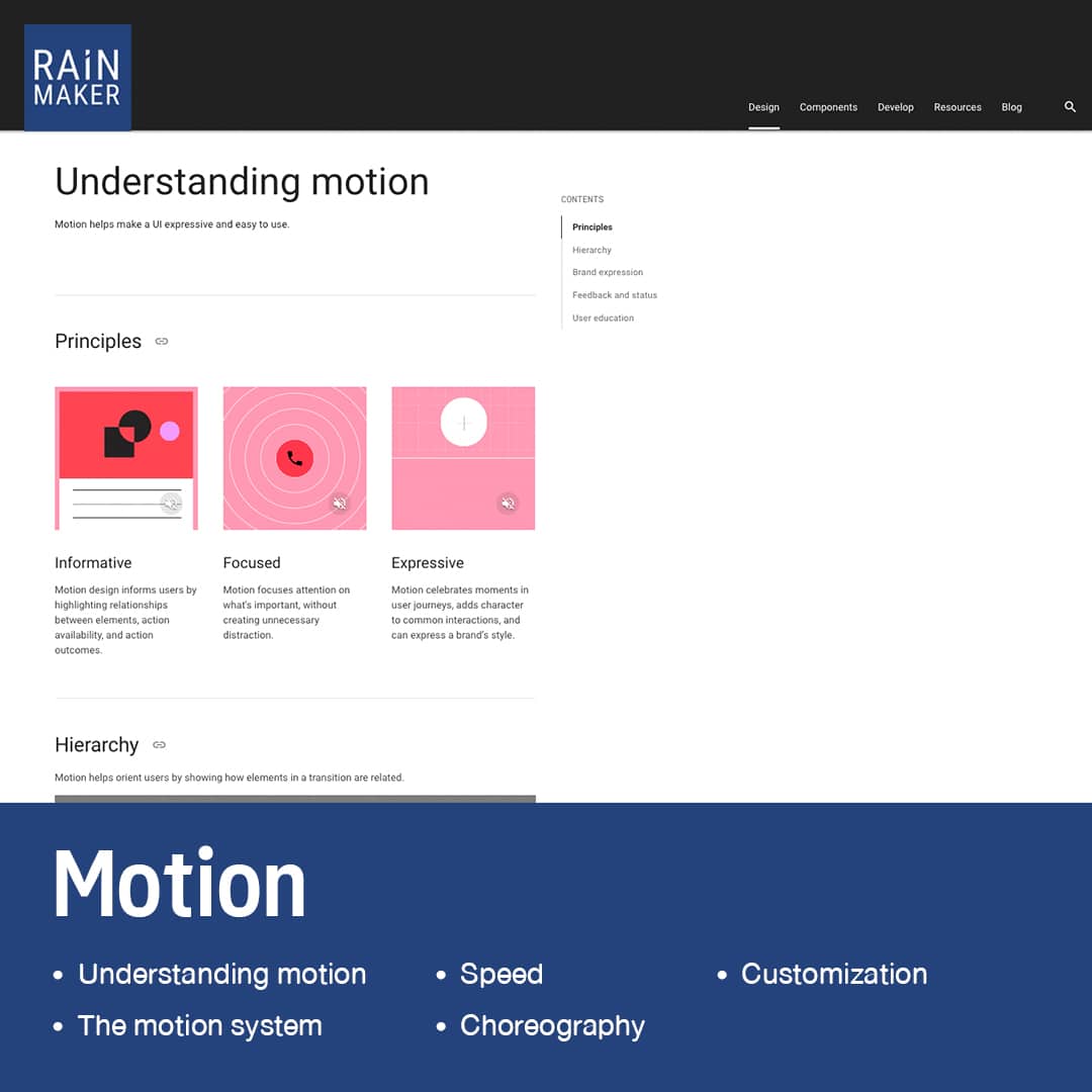 ซึ่งเว็บไซต์นั้นมีชื่อว่า Material.io ที่ให้ความรู้ทั้งการออกแบบ ในด้านของดีไซน์ และการพัฒนาระบบต่างๆ ที่แยกเป็นหมวดหมู่ให้เลือกดูครบทุกด้าน ไม่ว่าจะเป็นภาพรวม เสียง ตัวหนังสือ ปุ่ม หรือส่วนขยายต่างๆ รับรองว่าเป็นประโยชน์ต่อสายกราฟิกให้ได้นำไปต่อยอดกับหลายๆ งานได้แน่นอน