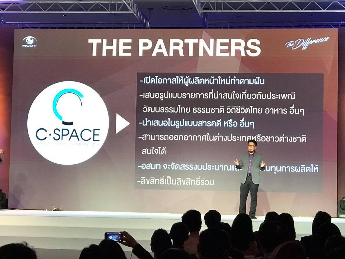 3. THE PARTNERS อสมท จะจับมือกับพันธมิตรเพื่อสร้างโอกาสใหม่ทางธุรกิจ โดยจะเปิดให้ พันธมิตรรายใหม่ๆเข้ามาร่วมงานมากขึ้น ในโครงการ “C-SPACE” (Creative, Content and Communication) ด้วยการเปิดพื้นที่ให้ผู้ผลิตรายการและนักคิดรุ่นใหม่เสนอรายการใหม่ ๆ เพื่อต่อยอดผลงานไปยังตลาดต่างประเทศ โดย อสมท จัดสรรงบประมาณในการผลิตcontent และเปิดตลาดในต่างประเทศร่วมกัน พร้อมทั้งเป็นตัวกลางเชื่อมโยงให้ผู้ประกอบการสามารถเข้าถึงแหล่งเงินทุนจากธนาคารพัฒนาวิสาหกิจขนาดกลางและขนาดย่อมแห่งประเทศไทย (SMEs Bank)ได้อีกด้วย ซึ่งจะทำให้เกิดชุมชนคนผลิต Content ที่เป็น SME เพิ่มขึ้น