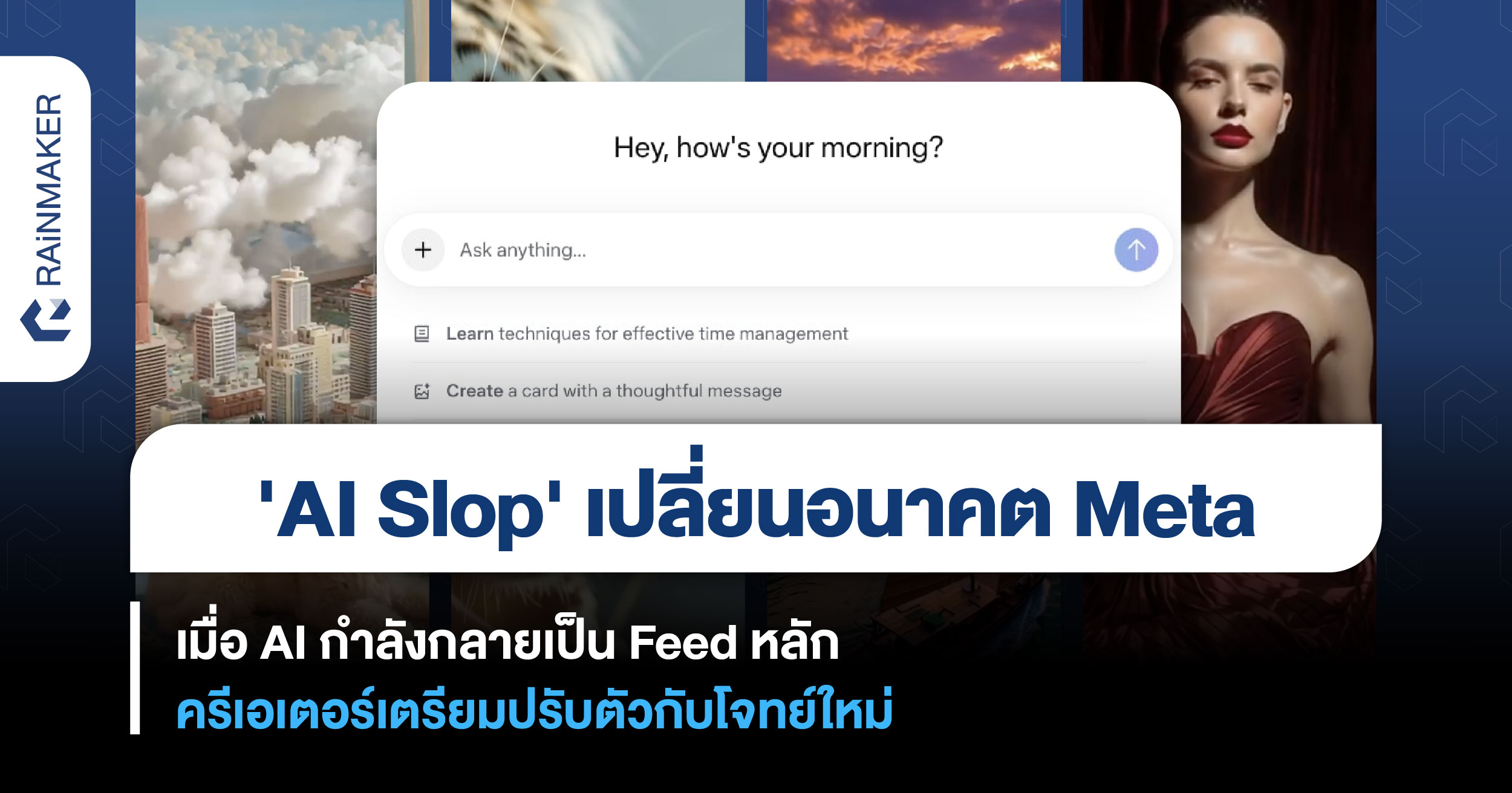 บทบาทของครีเอเตอร์ในอนาคตอาจเปลี่ยนจากเพียงผู้ผลิตคอนเทนต์เพื่อดึงการมองเห็นไปสู่การเป็นต้นทางของไอเดีย วางรูปแบบ และสัญญาณที่ AI สามารถนำไปใช้ต่อยอดได้ ท่ามกลางกระแสที่ถูกเรียกว่า AI Slop หรือเนื้อหาที่สร้างโดย AI ในปริมาณมหาศาลซึ่งอาจเข้ามาครอบครอง Feed มากขึ้น