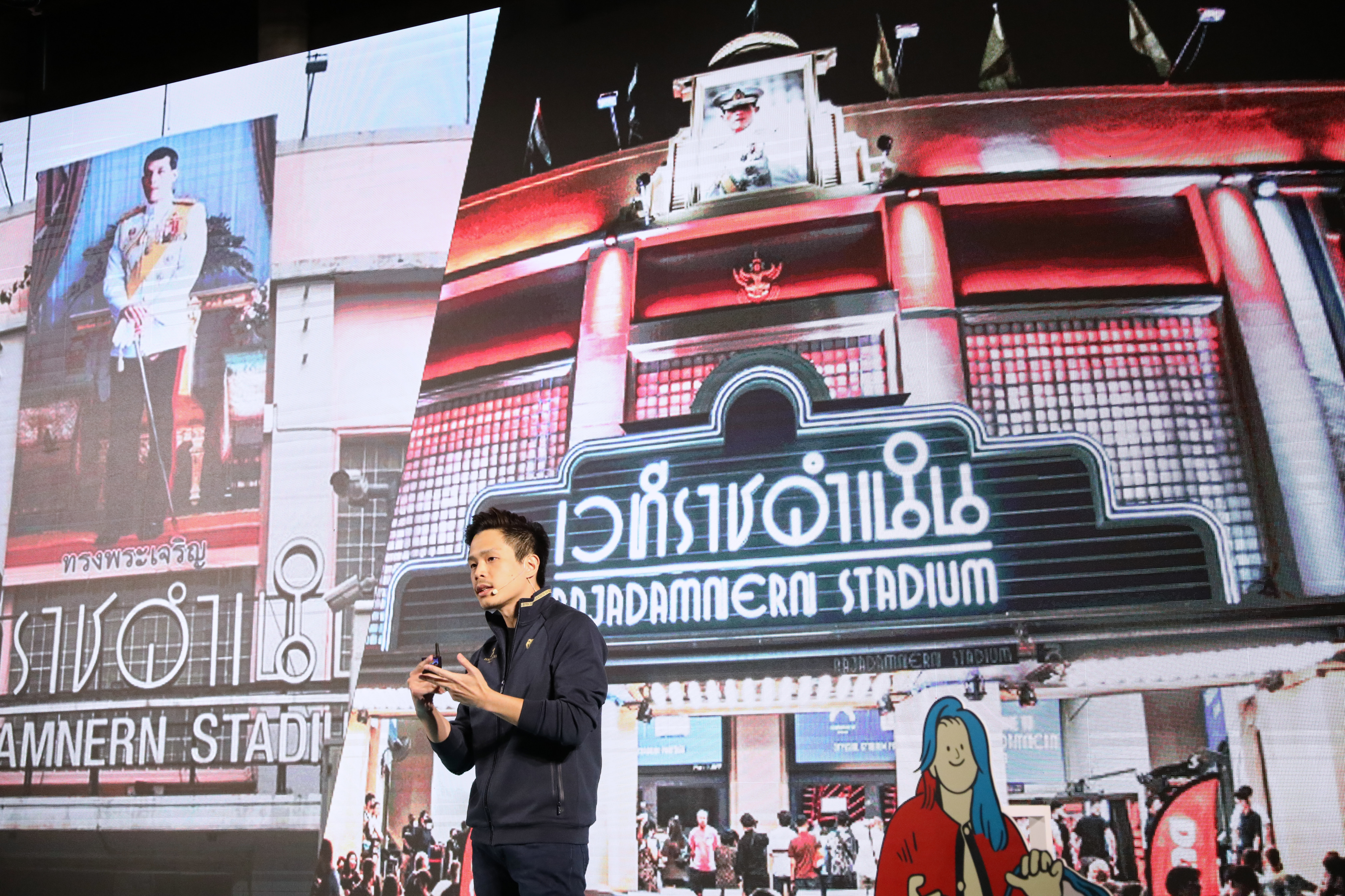 ซึ่งสปีกเกอร์ที่ขึ้นเวทีคนแรกคือ เธียรชัย พิสิฐวุฒินันท์ ซีอีโอ โกเบิล สปอร์ต เวนเจอร์ส (GSV) มาบอกเล่าว่าทุนที่สำคัญของเขาคือ ‘ความศรัทธาและผู้คน’ กลายมาเป็นประเด็นสำคัญให้เขาปฏิวัติวงการมวยไทย อันเป็นซอฟต์พาวเวอร์ให้เติบโต และเป็นที่รู้จักได้ในระดับโลก ด้วยการใช้หลัก 4 Re ได้แก่ Rebrand, Reimage, Regroup และ Relaunch