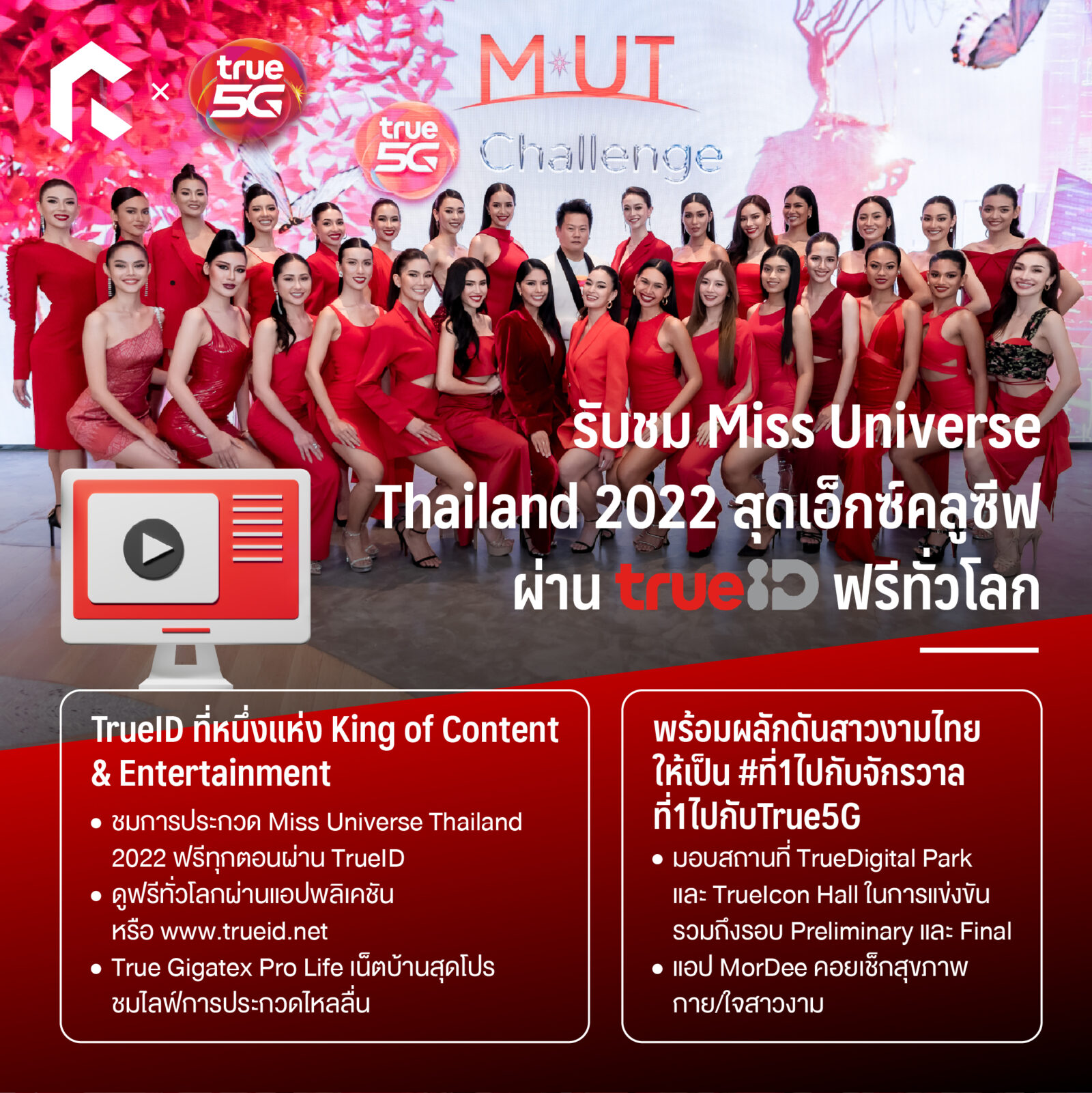ยังไม่หมดเพียงเท่านั้น เพราะ TrueID ที่ได้ชื่อว่าเป็นเจ้าแห่งคอนเทนต์ และศูนย์กลางแห่งความบันเทิงของคนไทย ได้ลิขสิทธิ์ถ่ายทอดสด Miss Universe Thailand 2022 ซึ่งถือว่าเป็นคอนเทนต์ระดับ World Class ที่มีผู้ติดตามทั้งในไทยและทั่วโลก มาฉายให้รับชมฟรีทั่วโลกแบบไม่คิดค่าใช้จ่ายแม้แต่บาทเดียว!