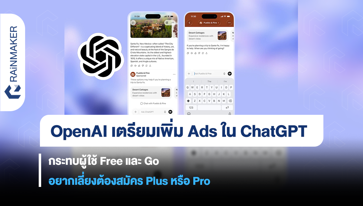 OpenAI เตรียมทดสอบเพิ่มโฆษณาบน ChatGPT ในอีกไม่กี่สัปดาห์ข้างหน้า โดยผู้ใช้ฟรีและ Go ในสหรัฐฯ จะเป็นกลุ่มแรกที่เริ่มเห็นโฆษณาปรากฏอยู่ใต้บทสนทนา ซึ่งโฆษณาจะมีป้ายกำกับชัดเจนแยกจากแชต อย่างไรก็ตาม OpenAI ย้ำว่าการเพิ่มโฆษณาจะไม่ส่งผลต่อคำตอบของ ChatGPT แน่นอน