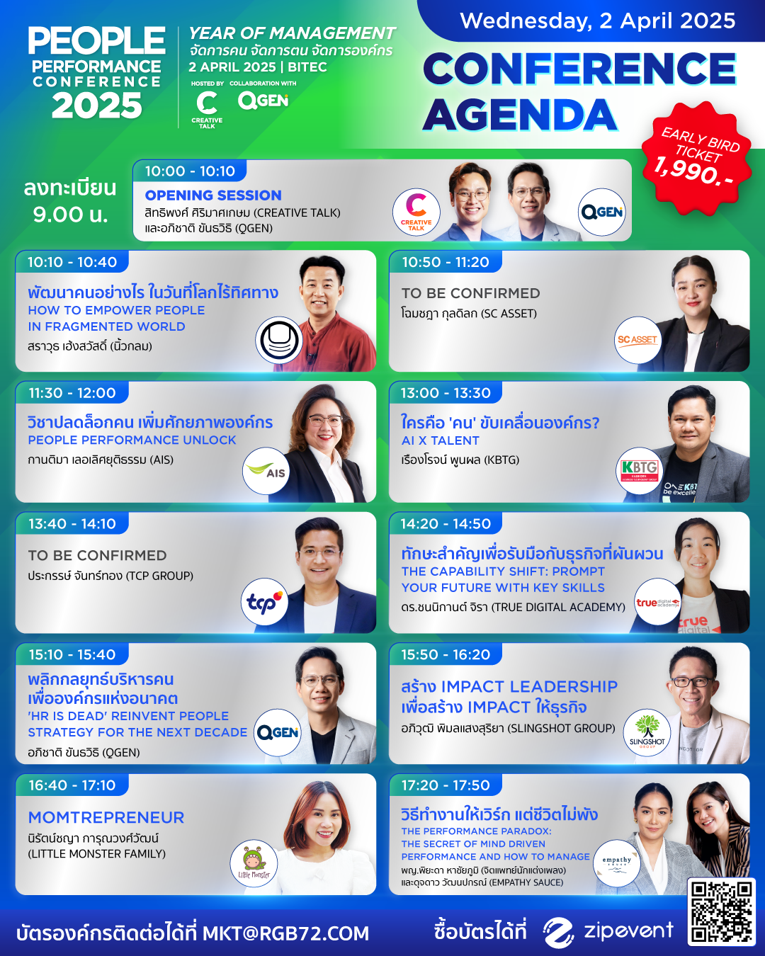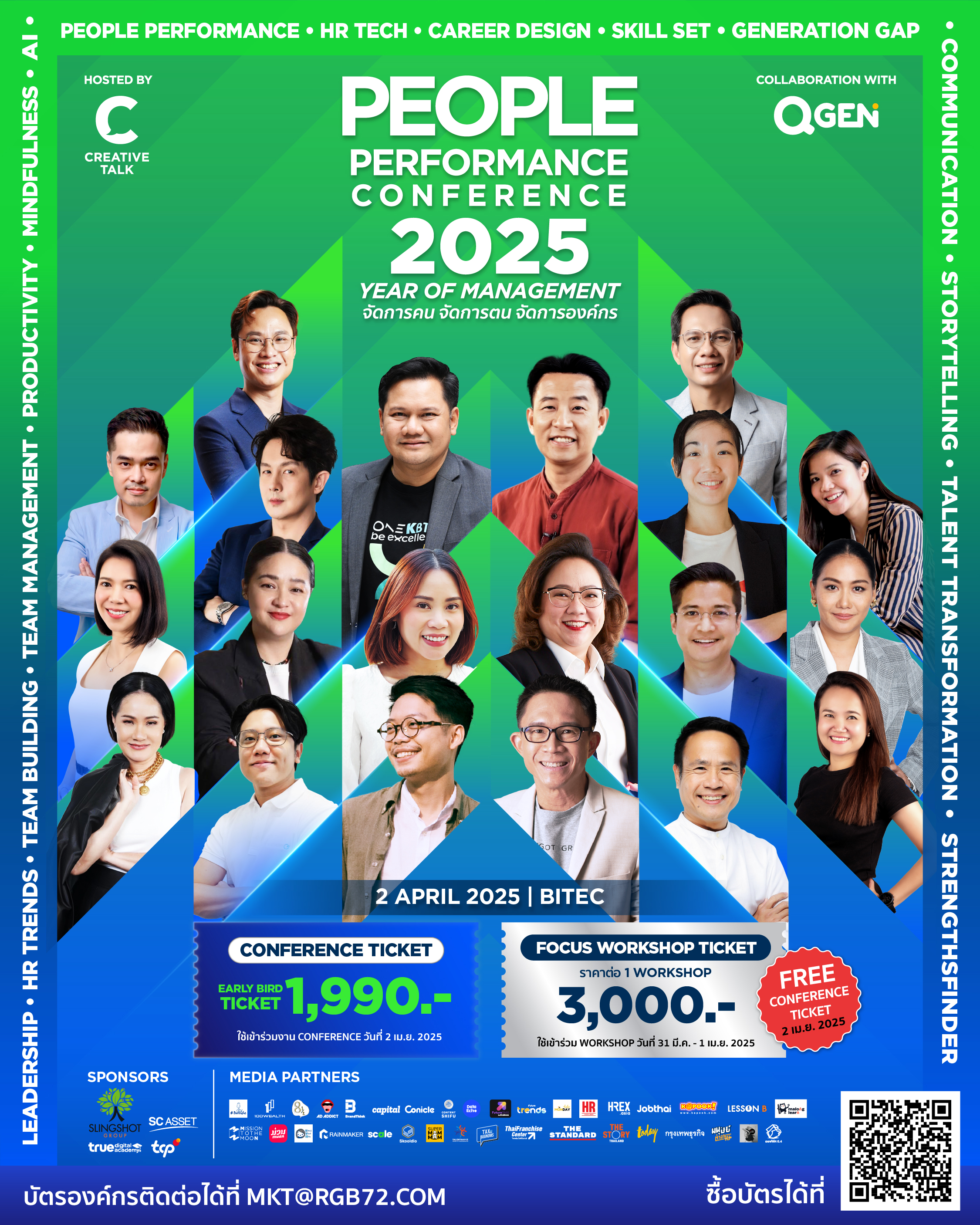 ซึ่งงาน PPC2025 ได้จัดต่อเนื่องเป็นปีที่ 3 ด้วยความร่วมมือระหว่าง CREATIVE TALK และ QGEN CONSULTANT เพื่อมุ่งถ่ายทอดความรู้และประสบการณ์จากผู้เชี่ยวชาญด้าน People & Organization ให้ทุกคนสร้างทีม และพัฒนาองค์กรให้เติบโตแบบก้าวกระโดด ผ่านกว่า 11 เซสชันที่ครอบคลุมตั้งแต่การสร้างความเป็น Leadership, การทำงานระหว่าง HR และ AI รวมถึงการเพิ่มศักยภาพของคนในทีม อาทิเช่น