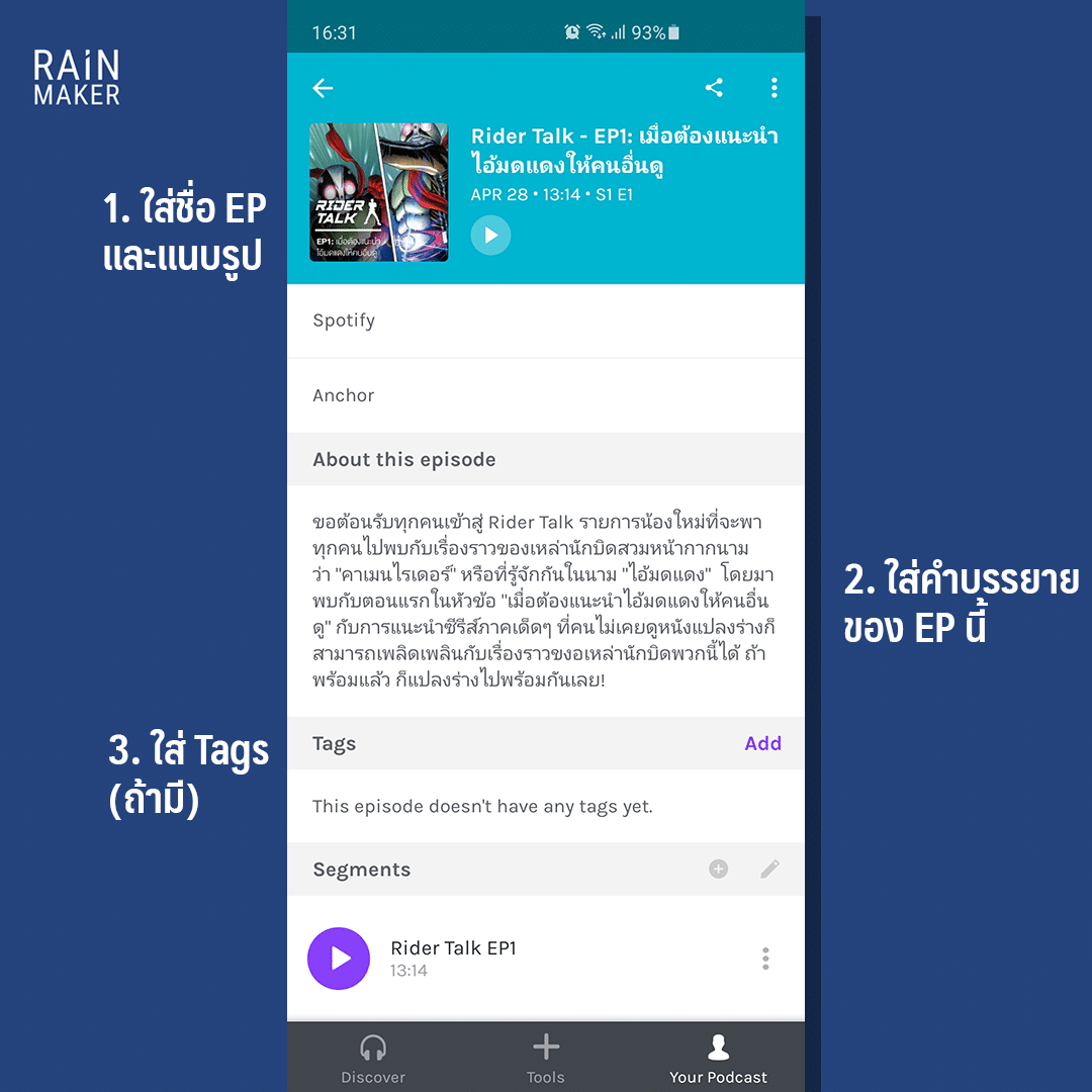 - เมื่ออัดและทำการอัปโหลดแล้ว ก็ใส่ชื่อ EP รายการพร้อมทั้งแนบรูปได้เลย