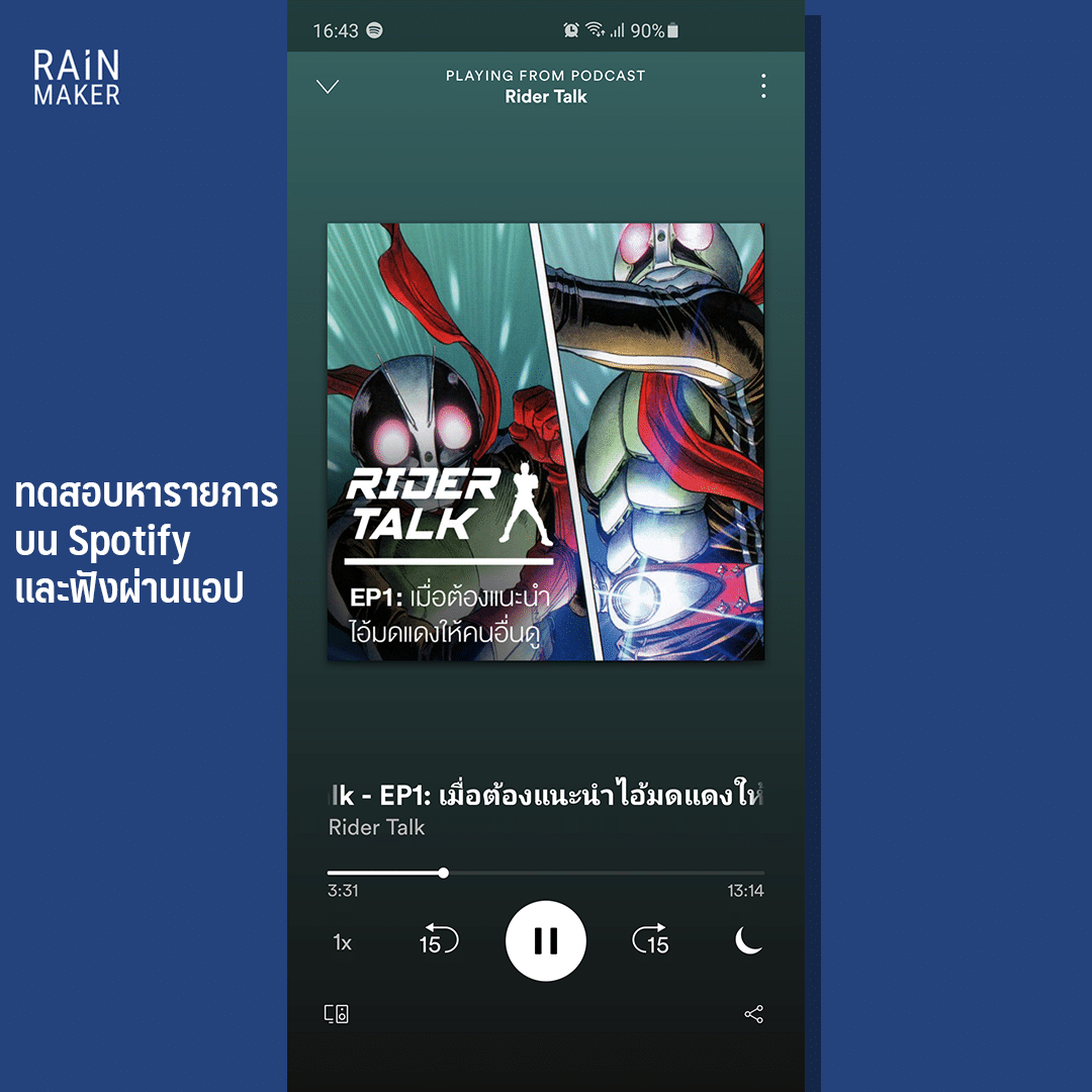 เมื่อ Anchor ทำการ distribute เรียบร้อยแล้ว จะมีการแจ้งเตือนว่าตอนนี้พร้อมฟังในแอปไหนแล้วบ้าง ซึ่งตัวอย่างเราจะลองค้นหารายการและฟังบนแพลตฟอร์มยอดนิยมอย่าง Spotify